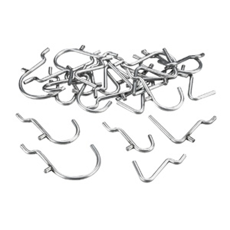 Perfect for use in the garage, workshop, tool shed, basement and throughout the home. The hooks have a diameter of 1/8 in and are made of steel with a zinc finish. Each hook can hold up to 1 lb. Installation is easy, just slide them into the holes on your pegboard.