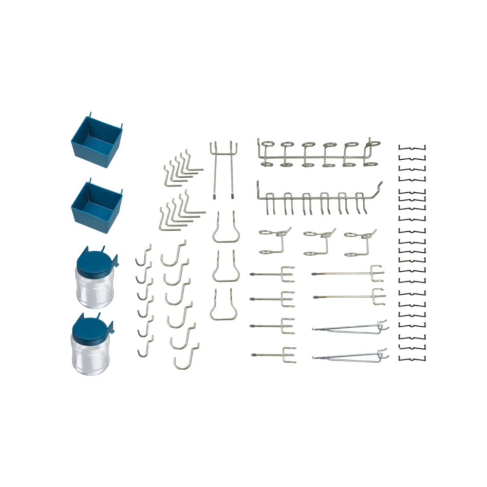 Customize your pegboard to best suit your needs. Includes 43 pieces as well as containers to keep everything sorted and organized. Ideal for organizing your shed, garage or workshop.