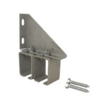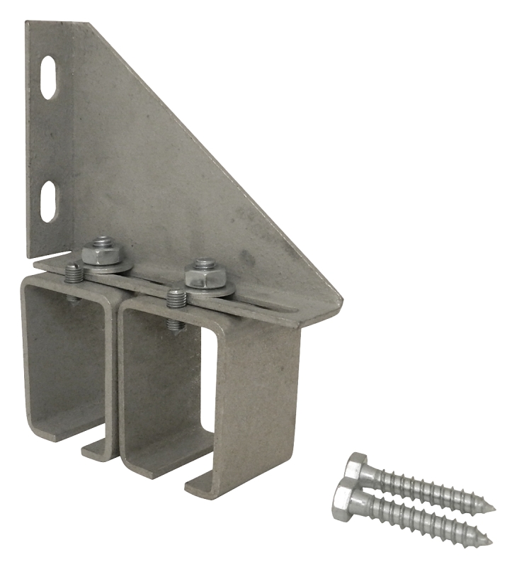 Adjustable wall mount bracket for box track rails. Ideal for use on metal-sided or corrugated siding.