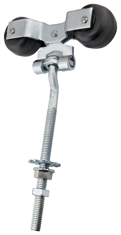 Onward Round Rail Hanger, Thread Size: 5-1/2 in, 600 lb Weight, Dimensions: 1-3/4 in H x 6 in W, Zinc, Suitable for: 1-1/2 to 3-1/2 in THK Aluminum, Metal Frame, Wood Doors, Includes: Ball Bearings, Flexible Long Offset Threaded Mounting Pin