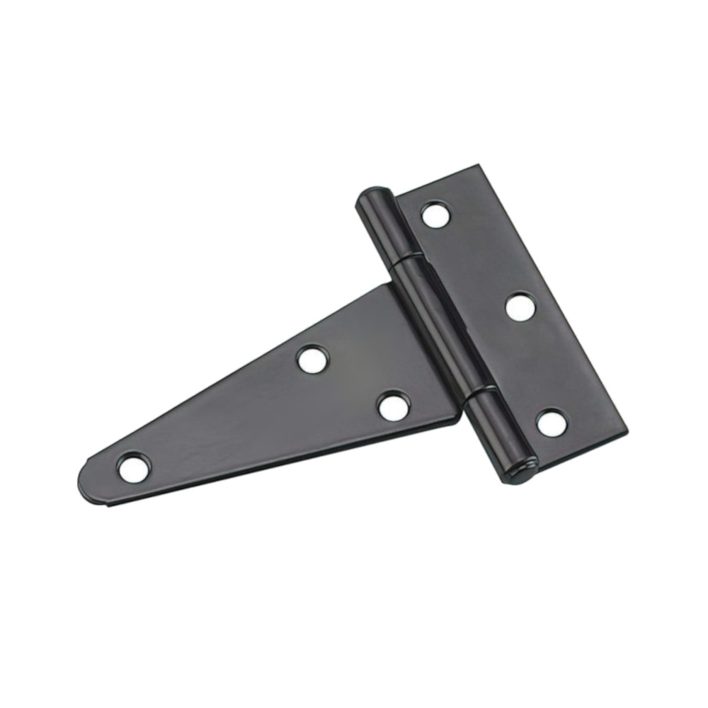 Install doors with this heavy-duty T-hinge. Its steel construction has a black finish that prevents corrosion. The 4-in L T-hinge is suitable for interior and exterior applications. With a working load of 22 lb, it is strong to support heavy doors. Use the decorative T-hinge to add a rustic look on barn doors or wood gates. | Onward Onward Heavy Duty T-Hinge – 4-in L x 3 7/16-in H – Fixed Pin – Black – 2 Per Pack 925FBV Onward | Heavy Duty T-Hinge – 4-In L X 3 7/16-In H – Fixed Pin – Black – 2 Per Pack .