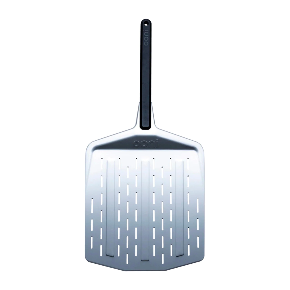 Our perforated aluminum Ooni Perforated Pizza Peel is a high-quality, lightweight peel for sliding, turning and retrieving pizzas from your oven with ease. Use the tapered peel edge to slide straight under pizza bases, while the perforations mean a perfectly cooked pizza every time as steam is able to quickly evaporate and excess flour falls away from the pizza base. A super-sleek, hard anodized coating provides increased corrosion resistance and a hyper-smooth surface to guarantee a seamless experience when launching and retrieving pizzas.