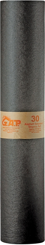 Saturated utility felt is a uniform, flexible felt of organic fibers, impregnated with an asphalt saturant. Used as an underlay beneath asphalt shingles, wood shakes, tiles and other sloped coverings. Meets ASTM 4869 Type I standard. 30RF has twice the thickness of 15RF. Approximately 36 lb per roll.