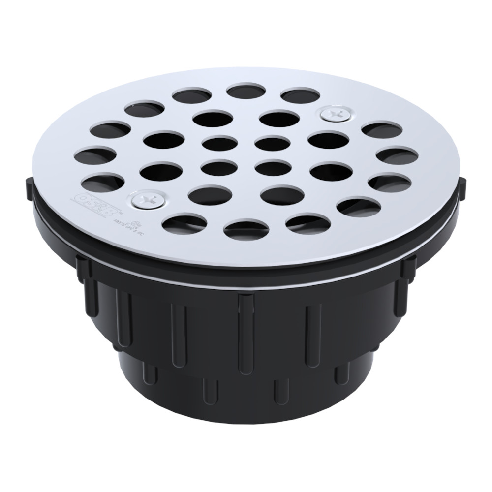 Shower drain shall be 2 piece, 2″ ABS outlet with 4-1/4″ round screw-in grate.