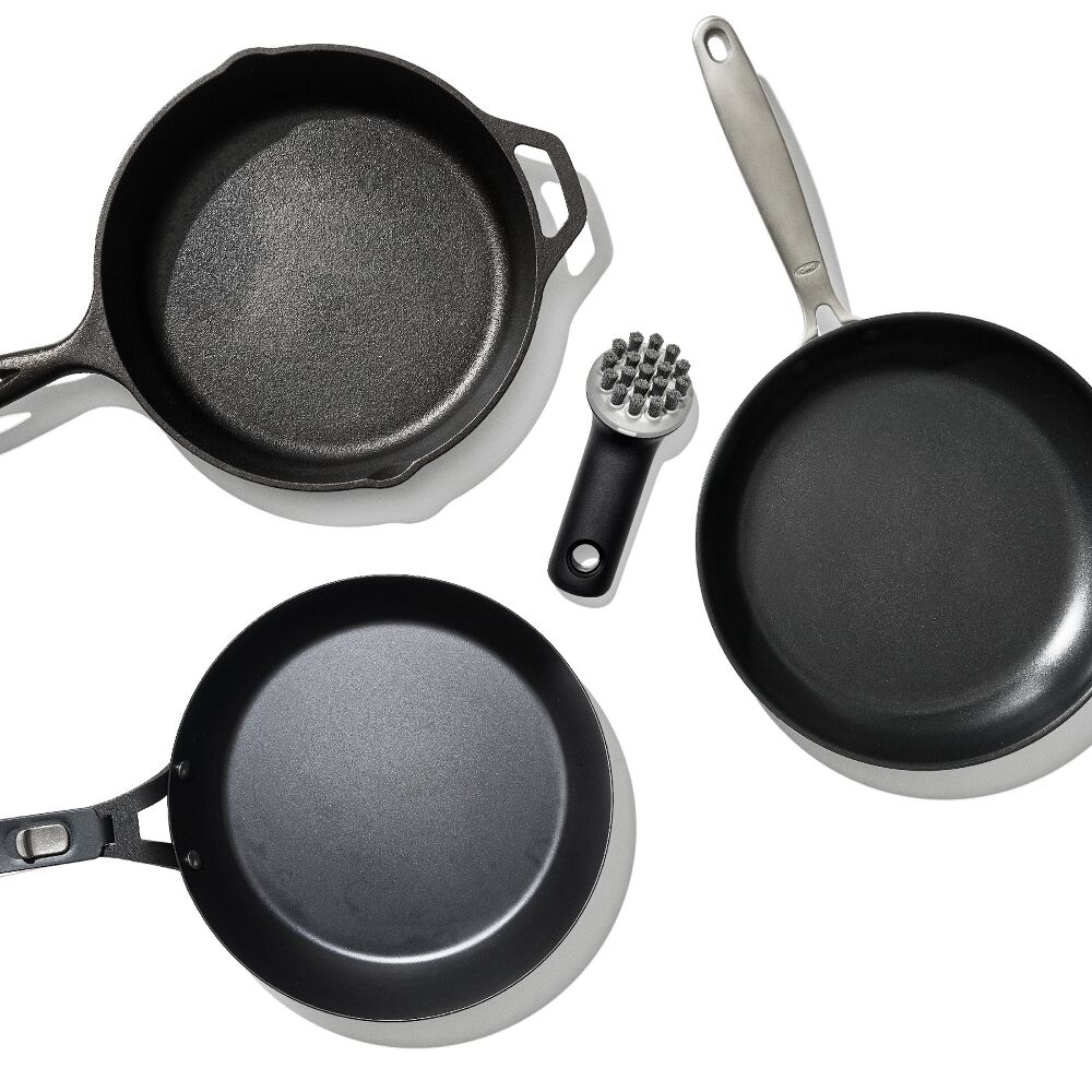 The OXO Outdoor Cast Iron Brush is built to handle tough cleanup while protecting your cookware. Strong enough for cast iron and carbon steel, yet gentle enough for non-stick pots and pans, it lets you clean without soap or detergent—so your carefully seasoned surfaces stay intact.
