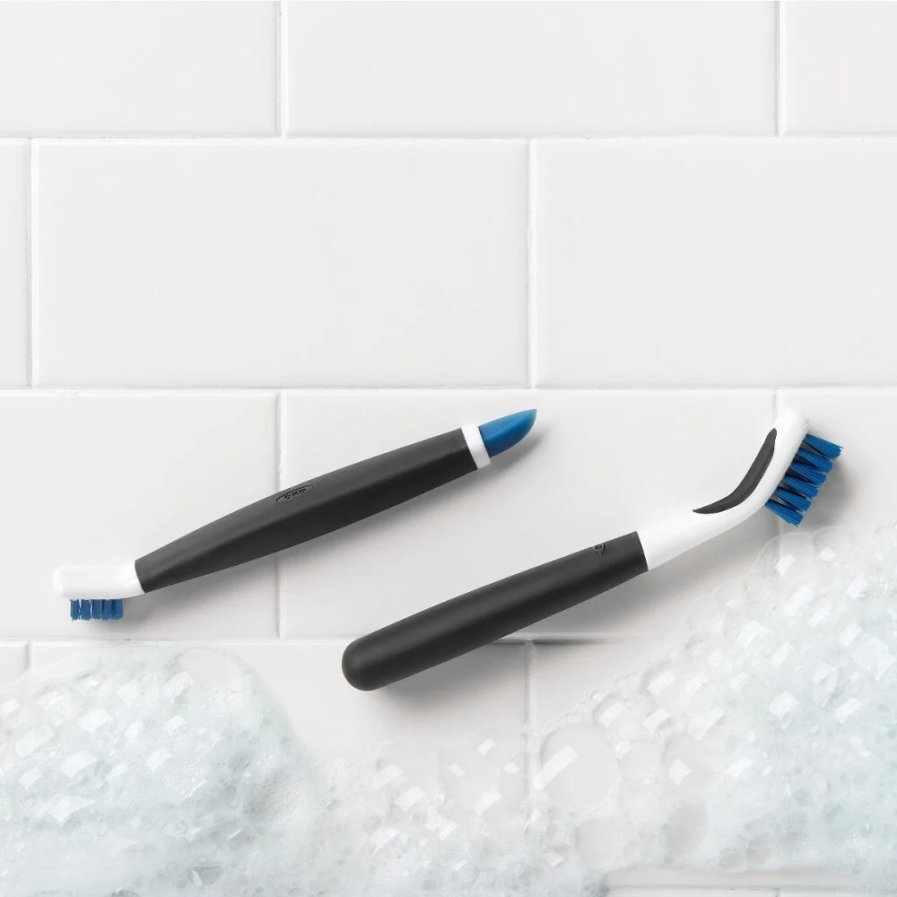 Tackle tough, hard-to-reach messes with this grime-fighting brush duo. The large brush powers through stubborn buildup on shower door tracks, stovetops, and more, while the small brush is perfectly sized for fixtures, thin grout lines, and tight spaces that standard brushes can’t get into.