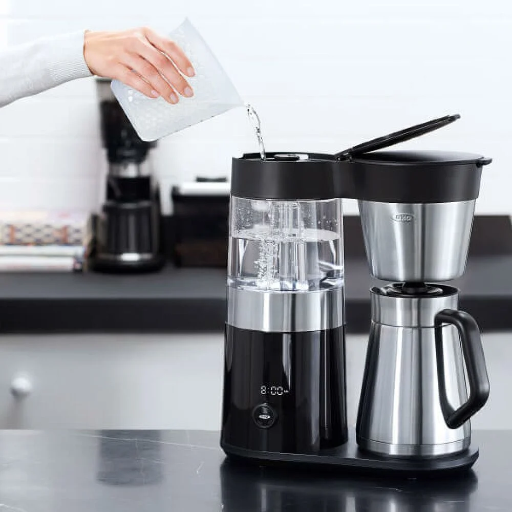 Brew the perfect cup every time with the OXO Brew 9-Cup Coffee Maker, engineered to precisely regulate the three variables that define a great pot of coffee—brew time, water temperature, and volume. Simply add water and ground coffee, select the number of cups, and let the machine take care of the rest.