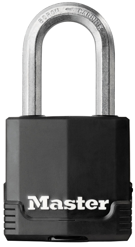 The Master Lock Magnum® No M115XDLF laminated padlock features a 1-7/8 in (48 mm) wide laminated steel body for maximum strength and reliability and is surrounded by stainless steel and zinc outer components for weather resistance. The Rust-Oleum® certified protection provides a lifetime guarantee against rusting on the lock body and covered lock body, keyway and shackle seals offer additional weather protection. The 5/16 in (8 mm) Dia octagonal shackle is 1-1/2 in (38 mm) long and made of Tough-Cut™ boron-carbide, 50% harder than hardened steel, offering maximum resistance to cutting and sawing. The four-pin cylinder prevents picking and the dual locking ball bearings provide maximum resistance against prying and hammering. The lifetime guarantee provides peace of mind from a brand you can trust.