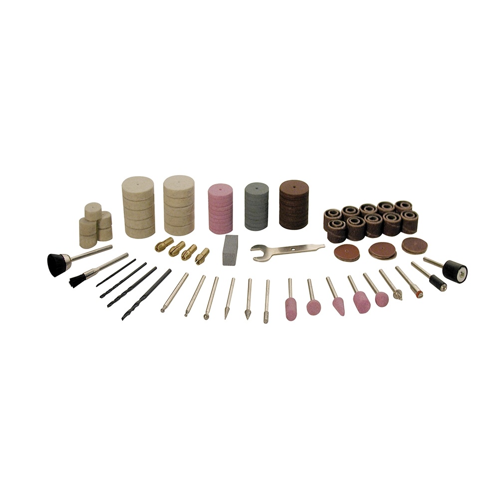 • 135 pc. accessory kit comes with assorted accessories, 40″ flex. shaft, height adjustable stand with adjustable clamp, collet nut adjustment key and sturdy carrying case