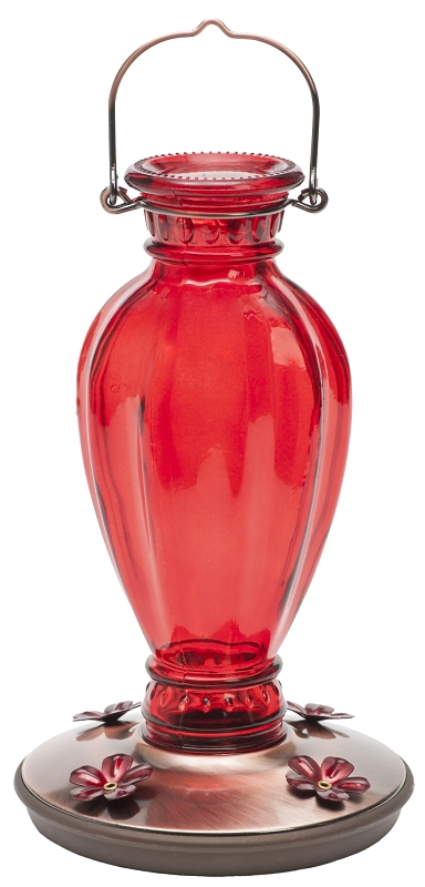 Perky-Pet® Daisy vase vintage hummingbird feeder is elegant and highly functional. Just fill with 18 oz of nectar and hummingbirds will buzz to your porch, backyard or garden. The gorgeous daisy vase glass design with red luster finish will certainly complement your outdoor decor. Its features include a wide mouth opening for easy filling and cleaning, four flower-shaped feeding ports for optimal nectar access and a 18 oz nectar capacity to keep your hummingbirds visiting day after day.