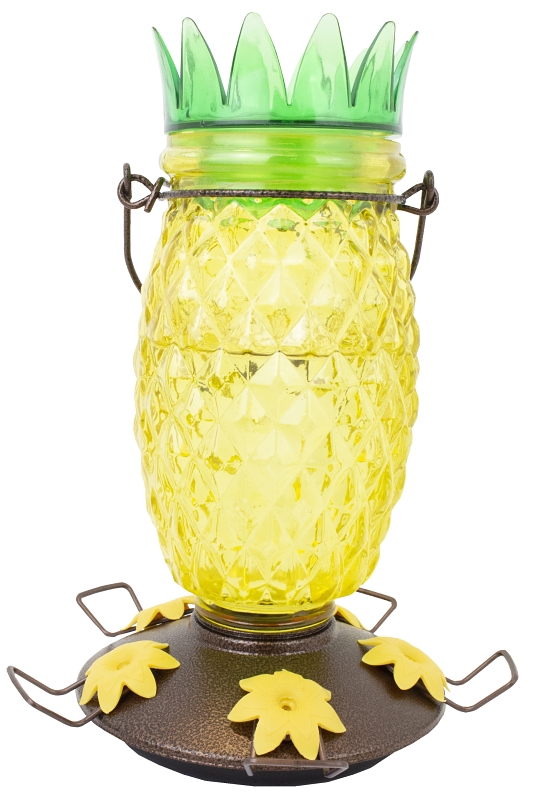 Perky-Pet Top-Fill Bird Feeder, Design/Theme: Pineapple Top, Food Capacity: 28 oz, Food Type: Nectar, Number of Ports/Perches: 5, Glass/Plastic, 10.63 in H, 6.3 in Dia, Attracts: Allen’s Hummingbird, Anna’s Hummingbird, Calliope Hummingbird, Rufous Hummingbird, Ruby-Throated Hummingbird