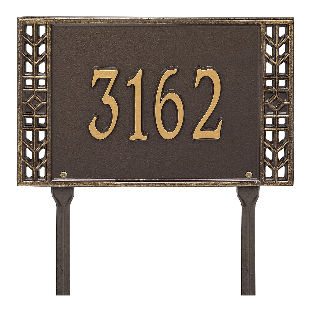 Dimensions (L x W x H): 15.625 x 9.5 x .387 The Boston personalized plaque is a great way to improve curb appeal. The Boston plaque boasts a Mission Style border that adds character to its traditional rectangle shape. Every Whitehall plaque is proudly hand crafted in the USA. Personalization is permanently cast into the sign. Manufactured from cast, high-density aluminum alloy and protected by our exclusive Alumi-Shield all weather coatings. Alumi-Shield All Weather Coating: A Whitehall Exclusive Alumi-Shield – Protects against the harshest weather and environmental elements. Extends the product life and maintains the look and function. Made in the USA.