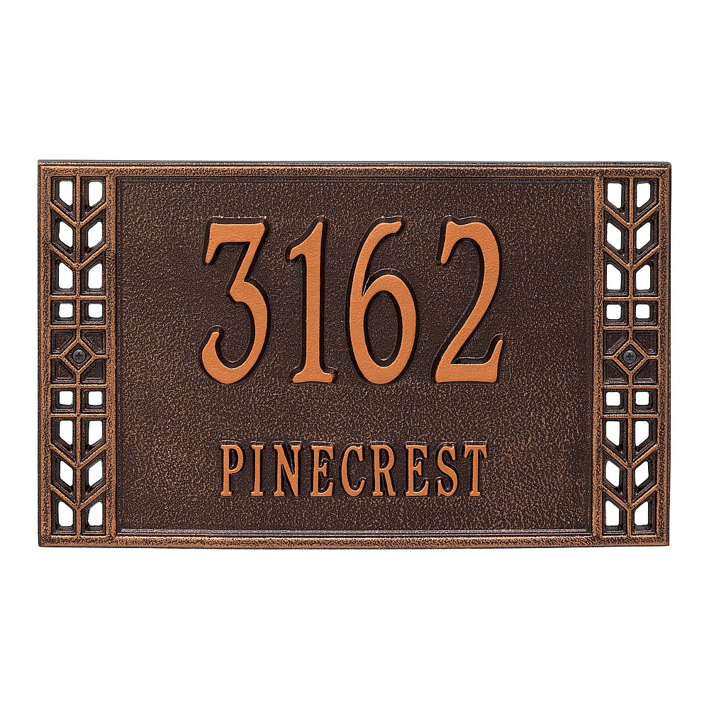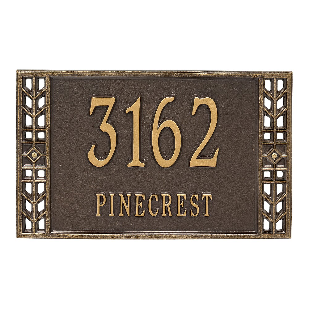 Dimensions (L x W x H): 15.625 x 9.5 x .381 The Boston personalized plaque is a great way to improve curb appeal. The Boston plaque boasts a Mission Style border that adds character to its traditional rectangle shape. Every Whitehall plaque is proudly hand crafted in the USA. Personalization is permanently cast into the sign. Manufactured from cast, high-density aluminum alloy and protected by our exclusive Alumi-Shield all weather coatings. Alumi-Shield All Weather Coating: A Whitehall Exclusive Alumi-Shield – Protects against the harshest weather and environmental elements. Extends the product life and maintains the look and function. Made in the USA.
