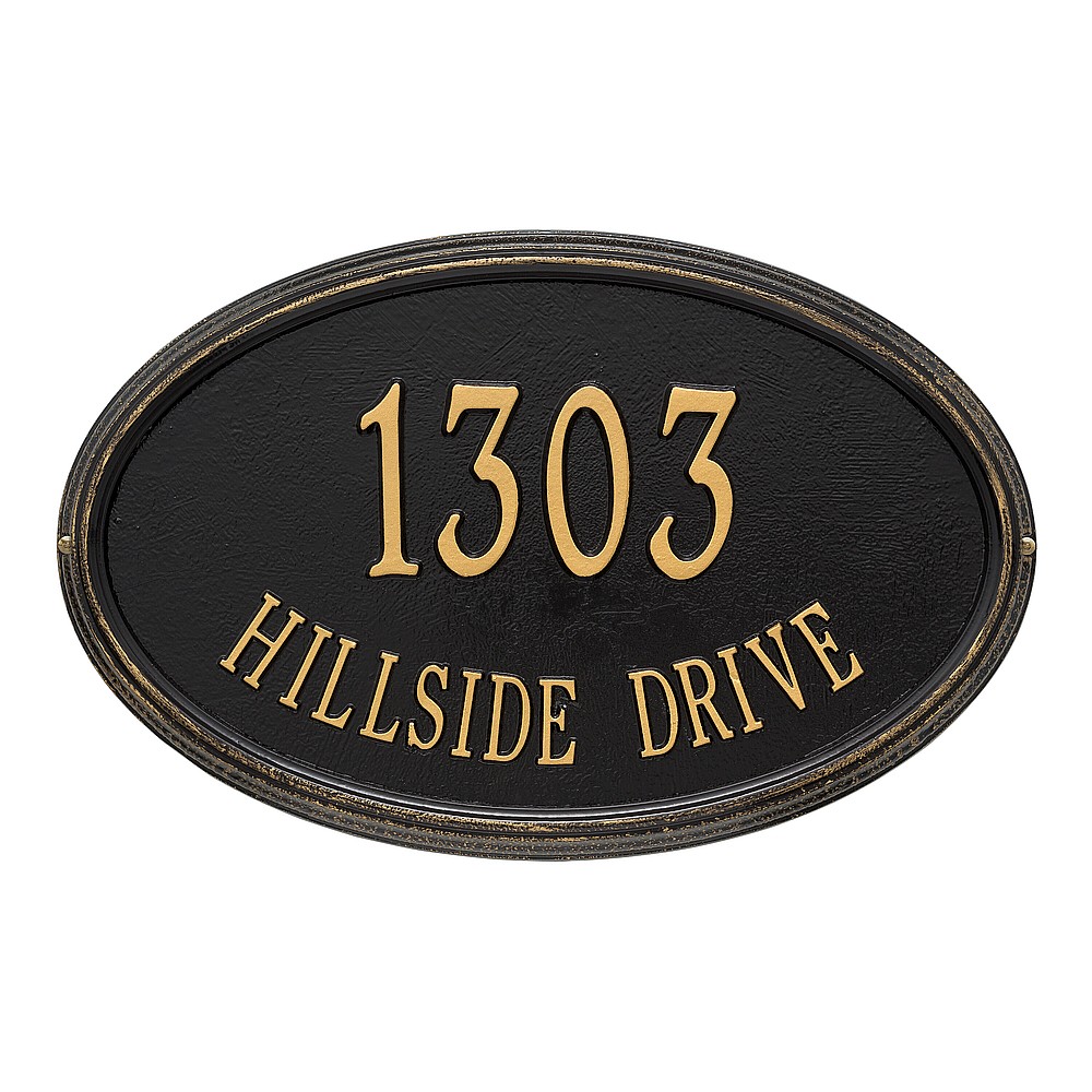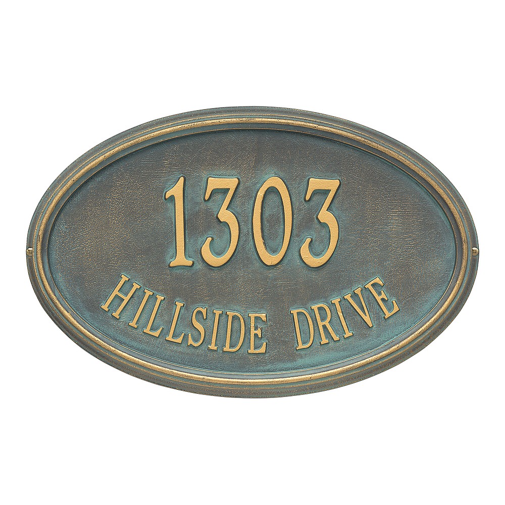 Dimensions (L x W x H): 20.5 x 13.25 x 1.25 The Concord Oval personalized plaque will add instant curb appeal. The raised border and classic lines of the Concord Oval are timeless. Every Whitehall plaque is proudly hand crafted in the USA. Personalization is permanently cast into the sign. Manufactured from cast, high-density aluminum alloy and protected by our exclusive Alumi-Shield all weather coatings. Alumi-Shield All Weather Coating: A Whitehall Exclusive Alumi-Shield – Protects against the harshest weather and environmental elements. Extends the product life and maintains the look and function. Made in the USA.