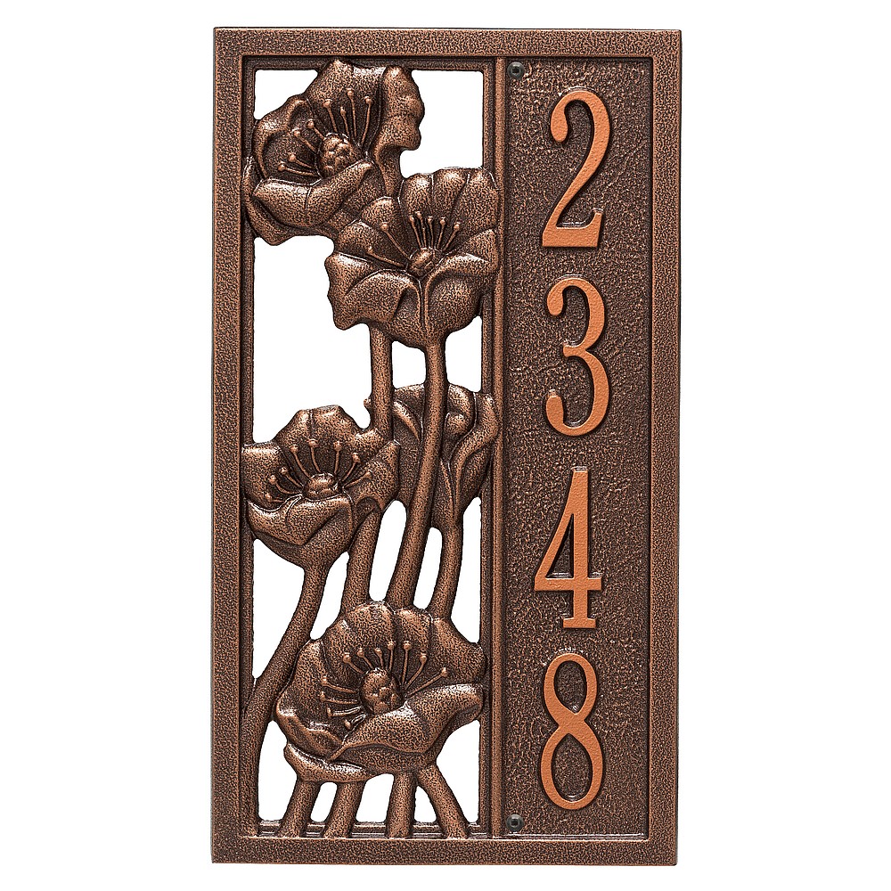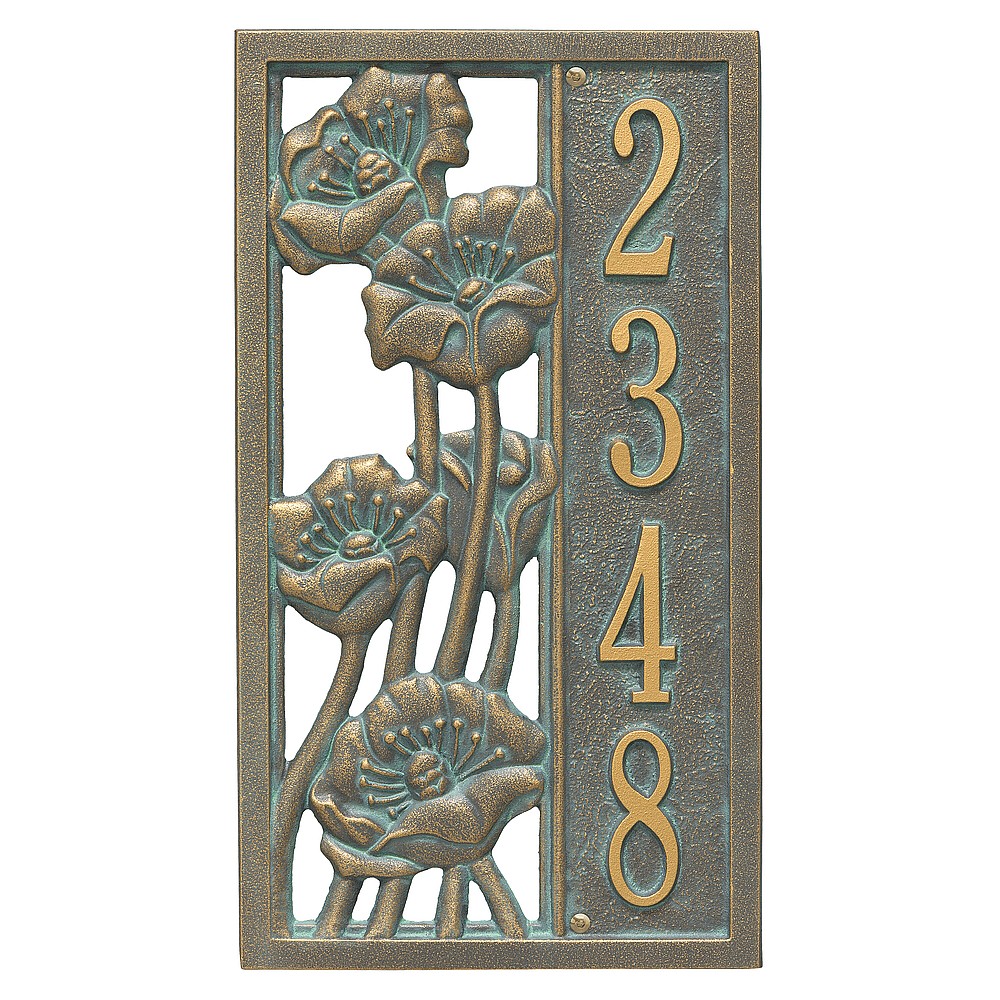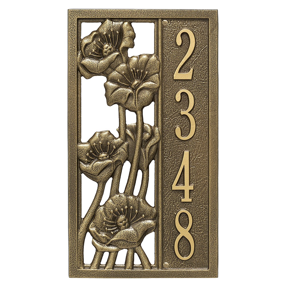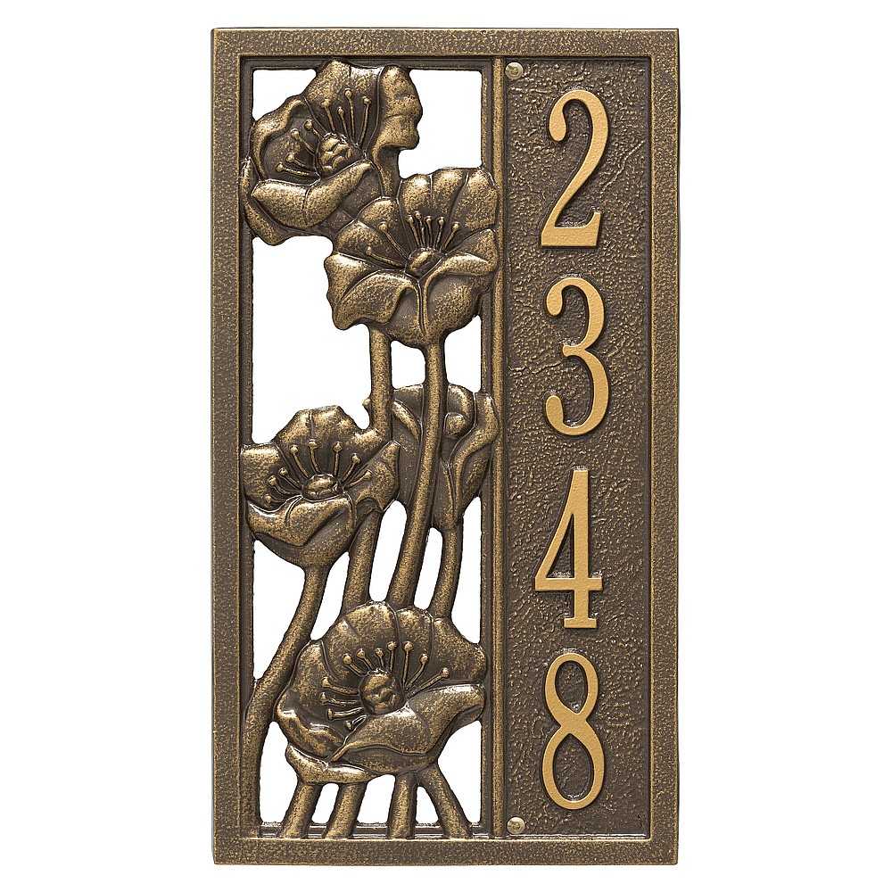 Dimensions (L x W x H): 15.6 x 8.75 x .375 The Whitehall Flowering Poppy personalized plaque is a great way to add instant curb appeal. The Flowering Poppy plaques classic rectangle shape is accented by a highly detailed poppy in bloom. Every Whitehall plaque is proudly hand crafted in the USA. Personalization is permanently cast into the sign. Manufactured from cast, high-density aluminum alloy and protected by our exclusive Alumi-Shield all weather coatings. Alumi-Shield All Weather Coating: A Whitehall Exclusive Alumi-Shield – Protects against the harshest weather and environmental elements. Extends the product life and maintains the look and function. Made in the USA.