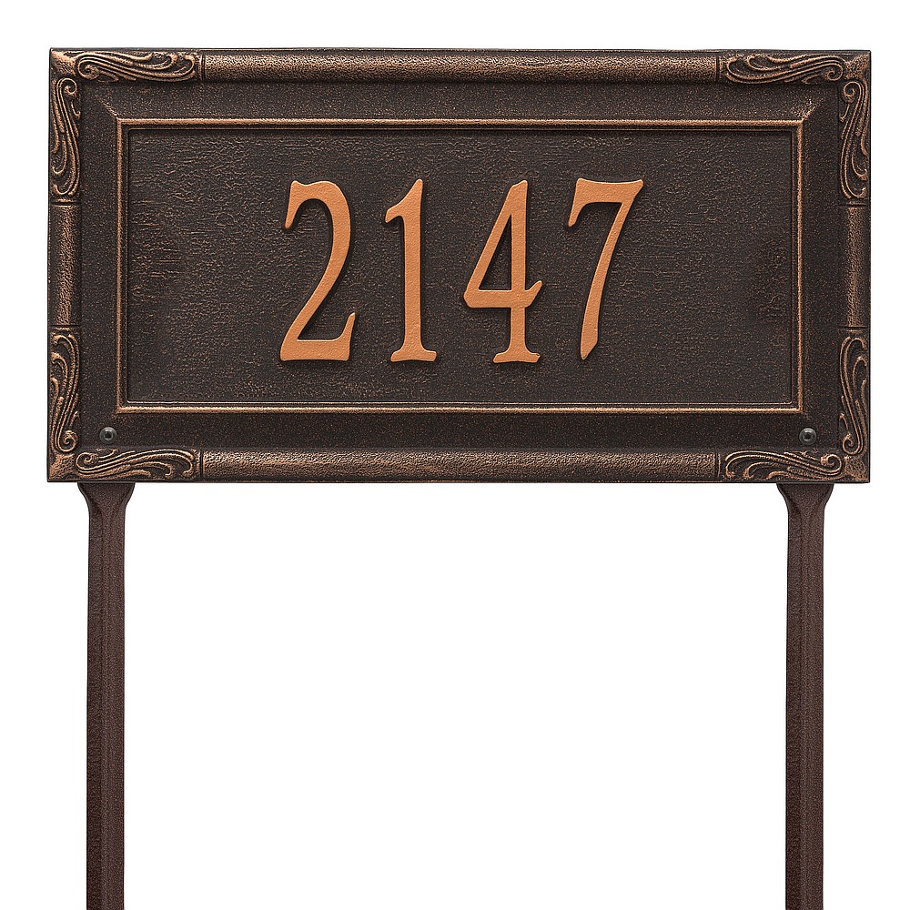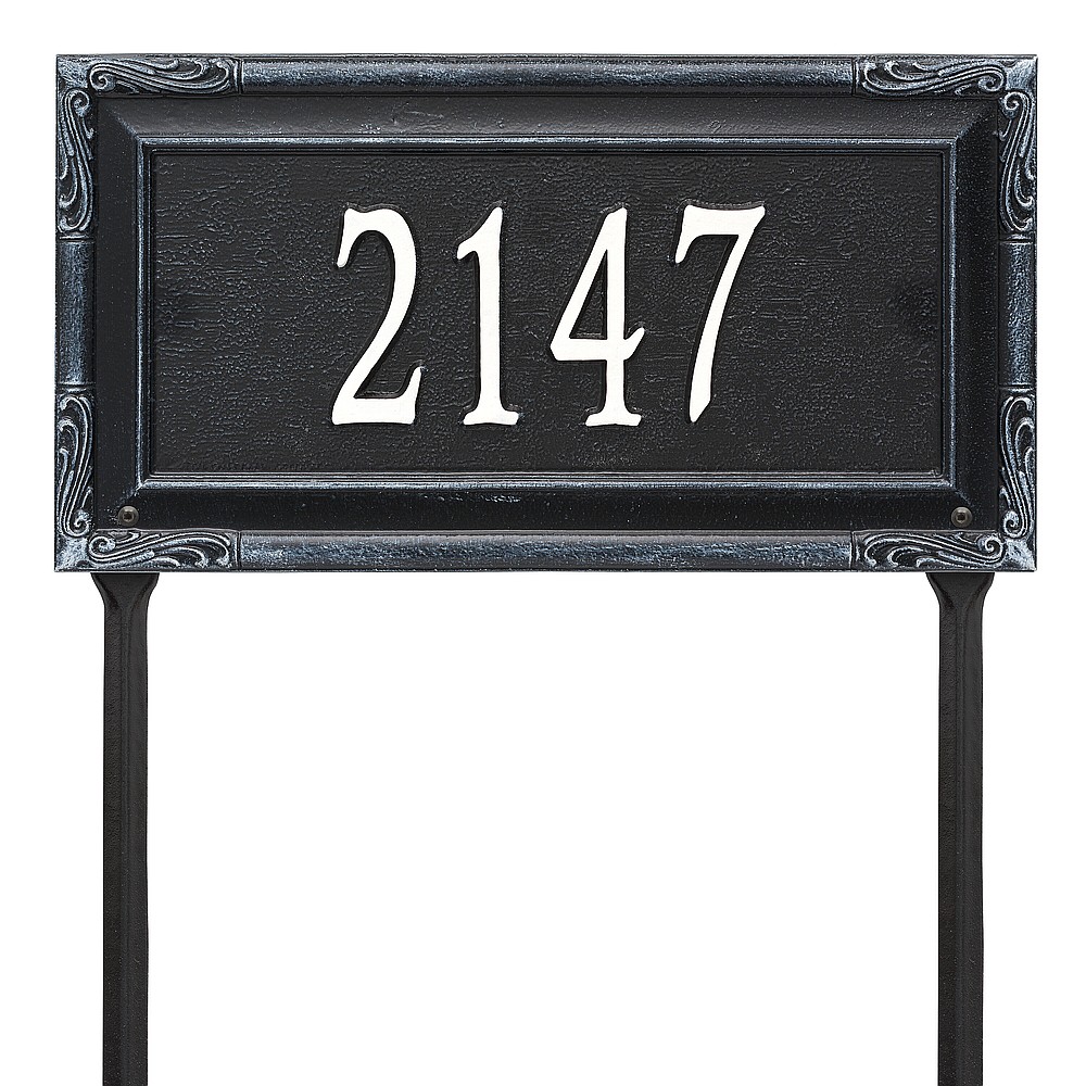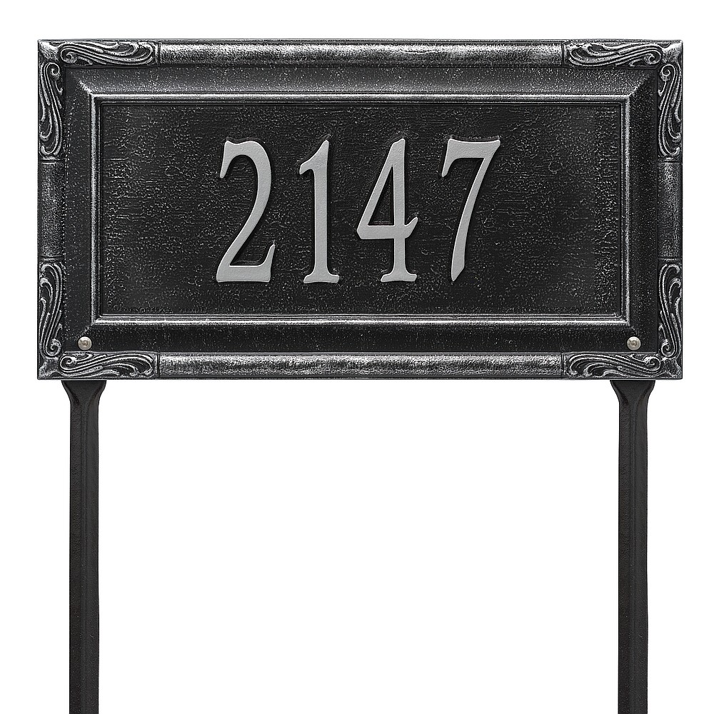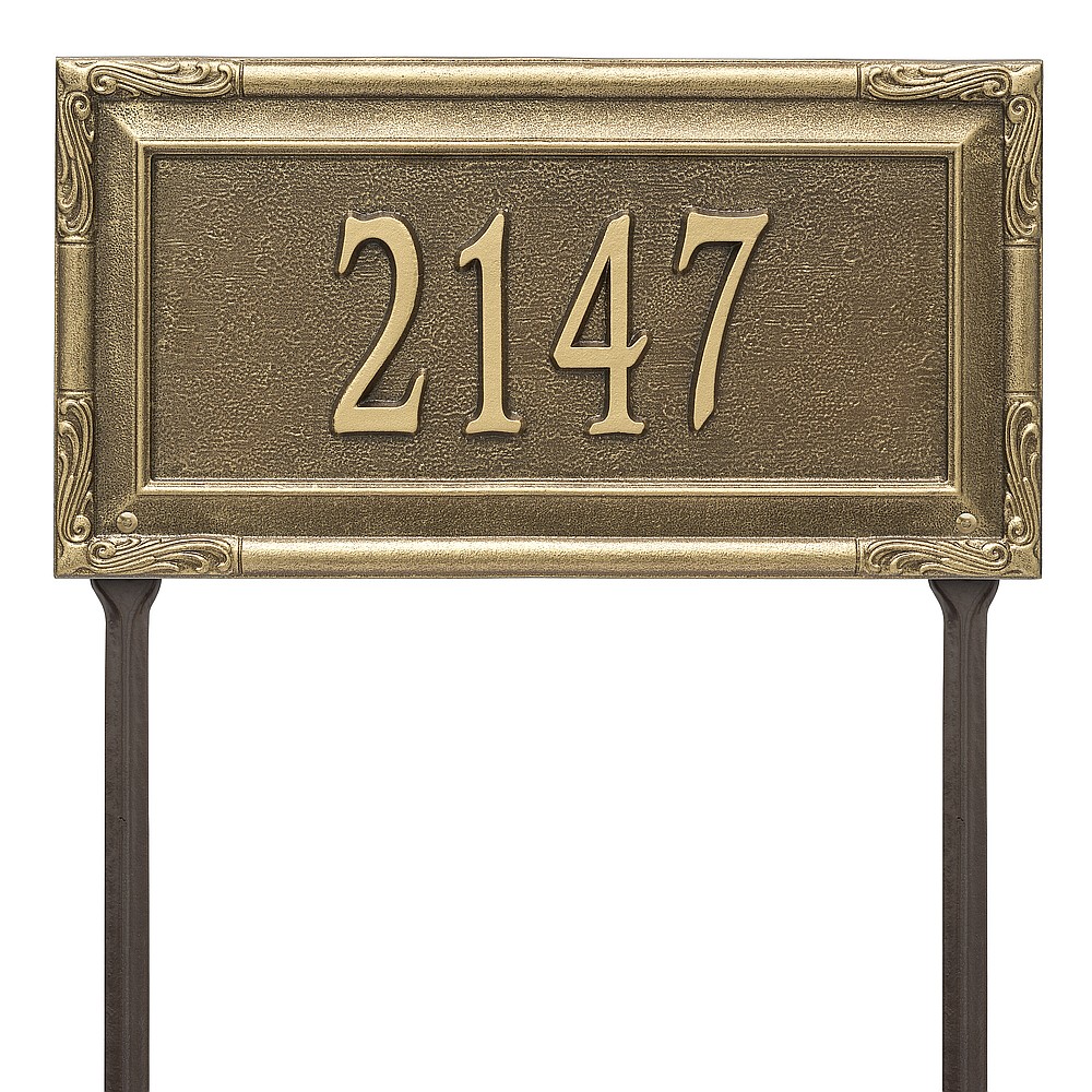Dimensions (L x W x H): 18 x 9.5 x .375 The Whitehall Gardengate personalized plaque adds instant curb appeal to your home address numbers. The Gardengate plaque features traditional styling and a simulated carved wood accent. Every Whitehall plaque is proudly hand crafted in the USA. Personalization is permanently cast into the sign. Manufactured from cast, high-density aluminum alloy and protected by our exclusive Alumi-Shield all weather coatings. Alumi-Shield All Weather Coating: A Whitehall Exclusive Alumi-Shield – Protects against the harshest weather and environmental elements. Extends the product life and maintains the look and function. Made in the USA.