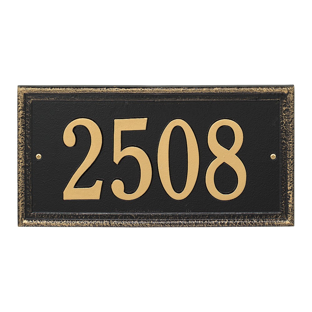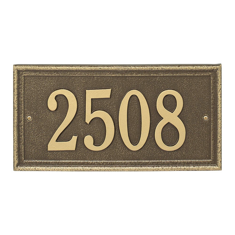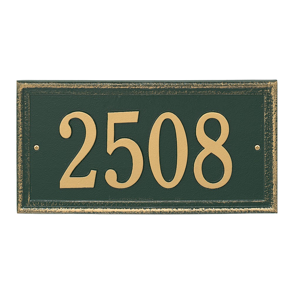 Dimensions (L x W x H): 15.7 x 8 x .375 The Masons personalized plaque is a great way to improve curb appeal. The Masons plaque features a raised border adding character to its traditional rectangle shape. Every Whitehall plaque is proudly hand crafted in the USA. Personalization is permanently cast into the sign. Manufactured from cast, high-density aluminum alloy and protected by our exclusive Alumi-Shield all weather coatings. Alumi-Shield All Weather Coating: A Whitehall Exclusive Alumi-Shield – Protects against the harshest weather and environmental elements. Extends the product life and maintains the look and function. Made in the USA.