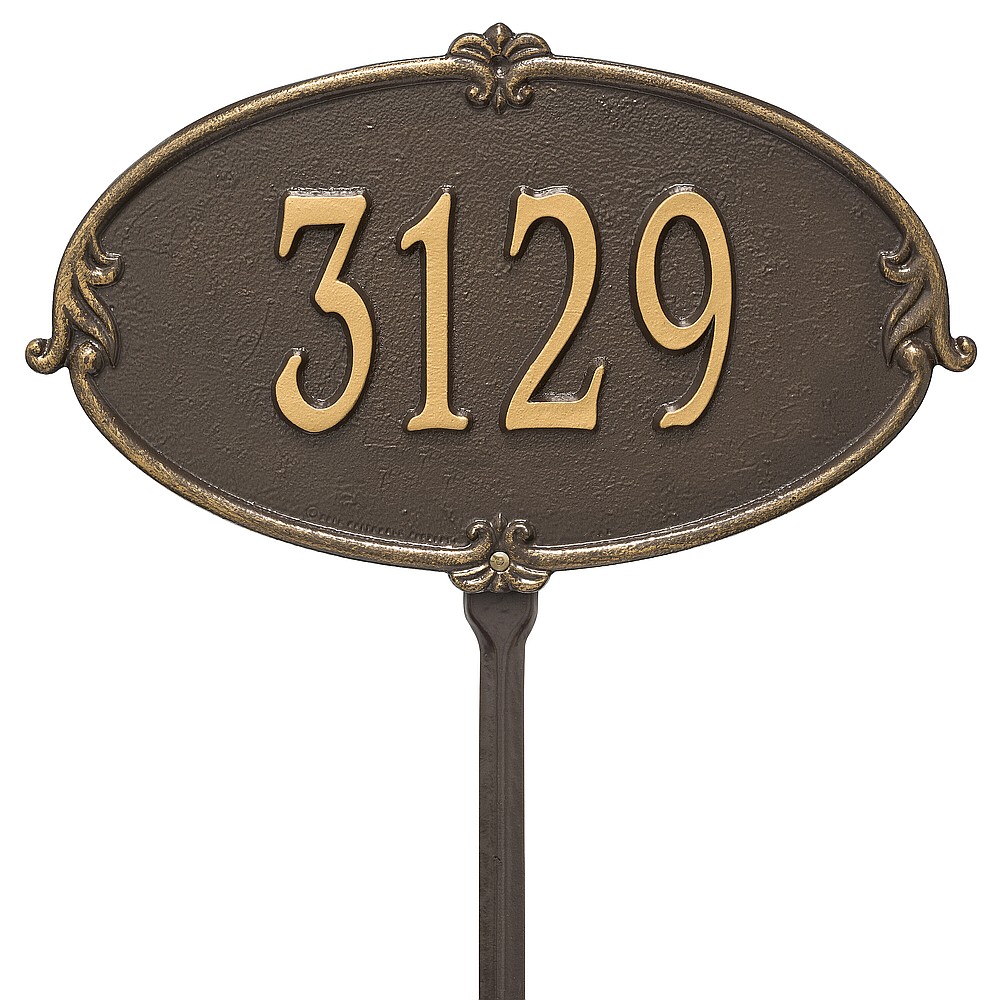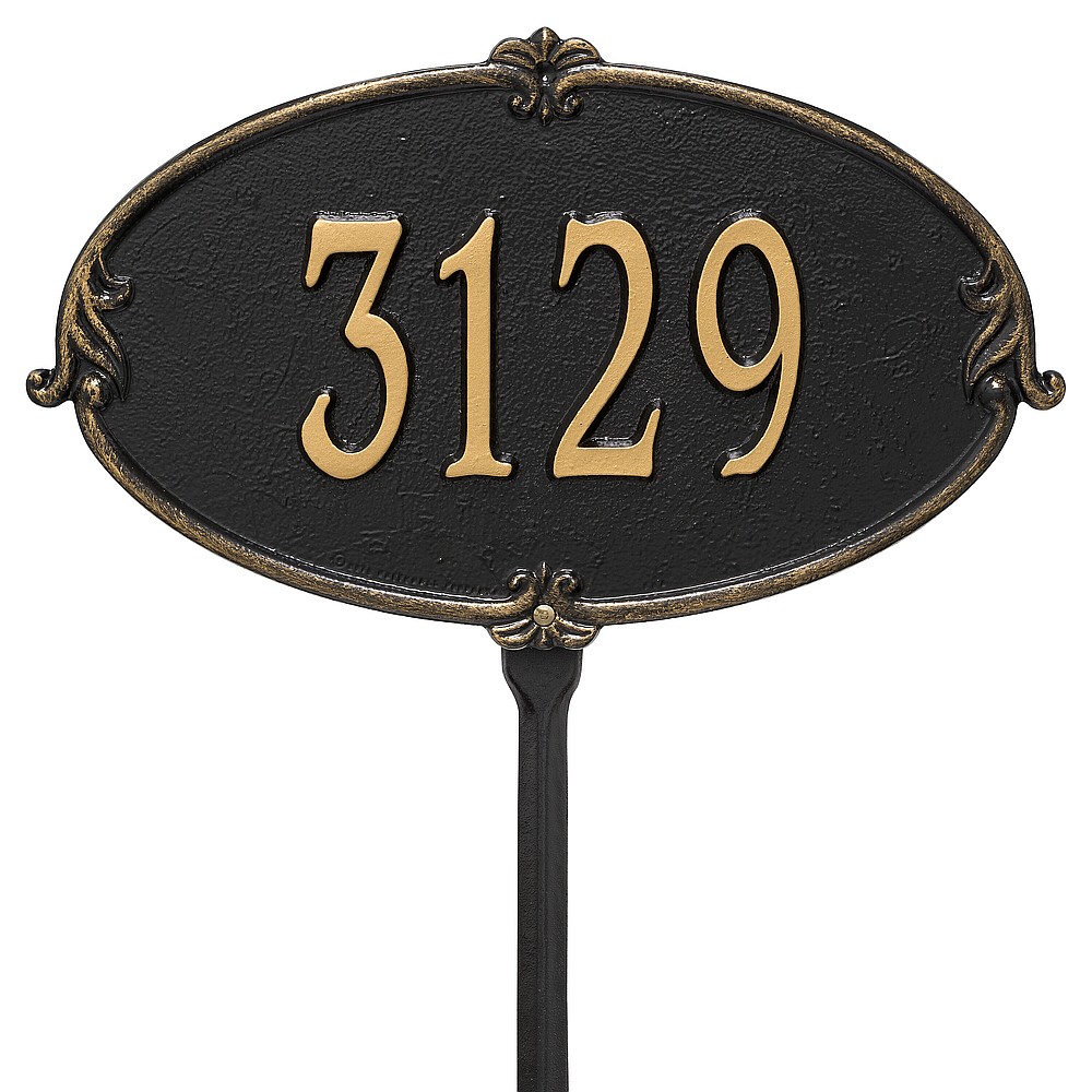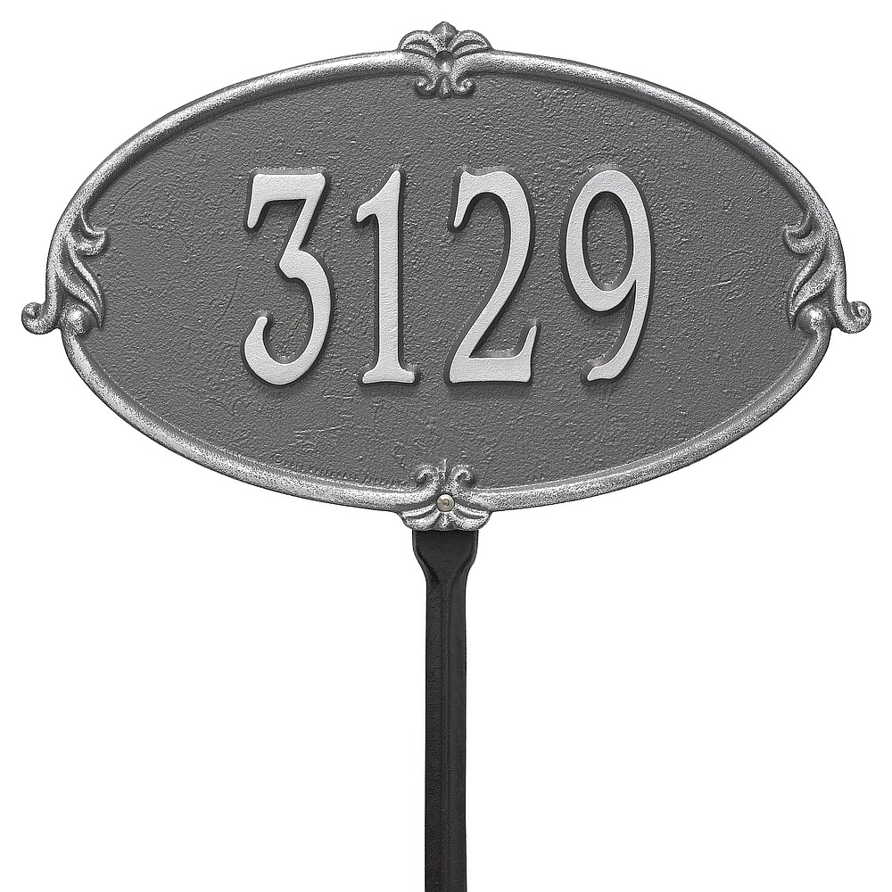 Dimensions (L x W x H): 16 x 9.75 x .375 The Whitehall Monte Carlo personalized plaque adds instant curb appeal to your home address numbers. The Monte Carlo plaque features traditional styling and a simulated carved wood accent. Every Whitehall plaque is proudly hand crafted in the USA. Personalization is permanently cast into the sign. Manufactured from cast, high-density aluminum alloy and protected by our exclusive Alumi-Shield all weather coatings. Alumi-Shield All Weather Coating: A Whitehall Exclusive Alumi-Shield – Protects against the harshest weather and environmental elements. Extends the product life and maintains the look and function. Made in the USA.