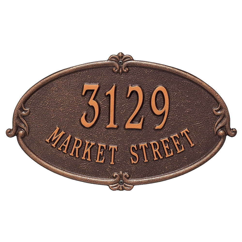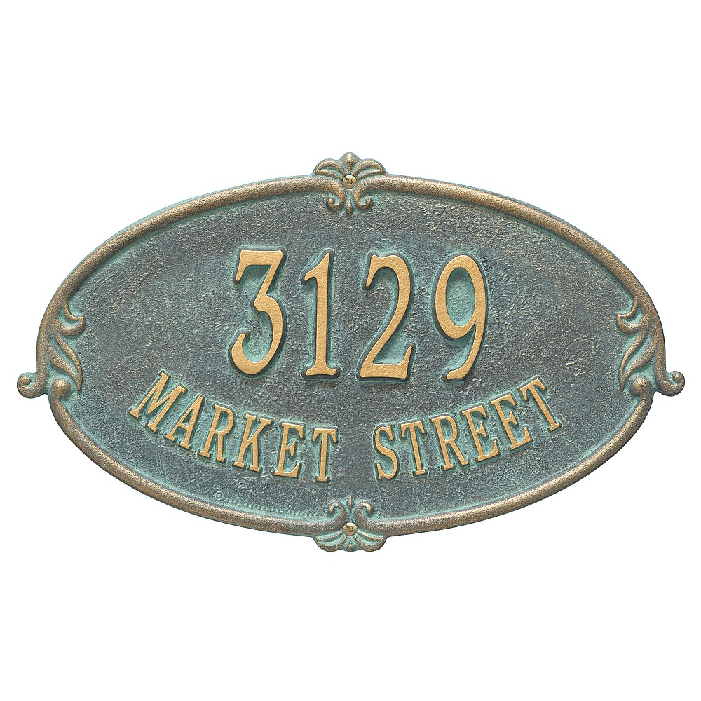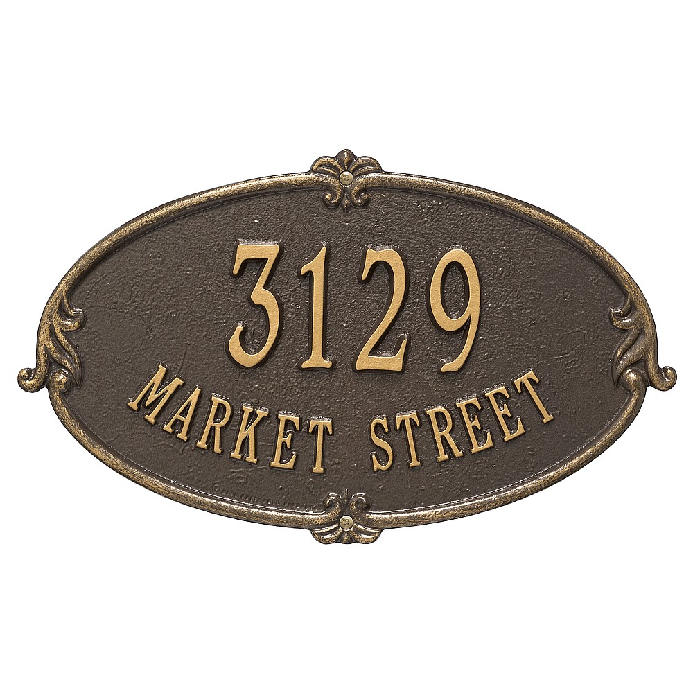 Dimensions (L x W x H): 16 x 9.75 x .375 The Whitehall Monte Carlo personalized plaque adds instant curb appeal to your home address numbers. The Monte Carlo plaque features traditional styling and a simulated carved wood accent. Every Whitehall plaque is proudly hand crafted in the USA. Personalization is permanently cast into the sign. Manufactured from cast, high-density aluminum alloy and protected by our exclusive Alumi-Shield all weather coatings. Alumi-Shield All Weather Coating: A Whitehall Exclusive Alumi-Shield – Protects against the harshest weather and environmental elements. Extends the product life and maintains the look and function. Made in the USA.