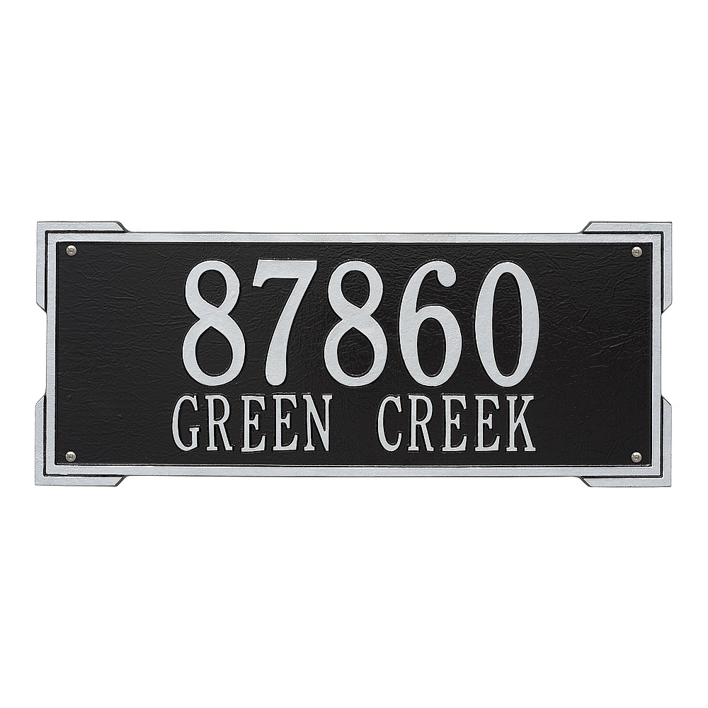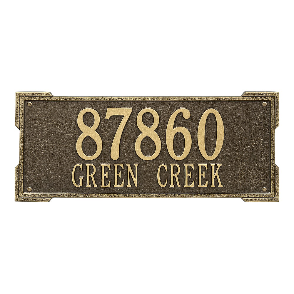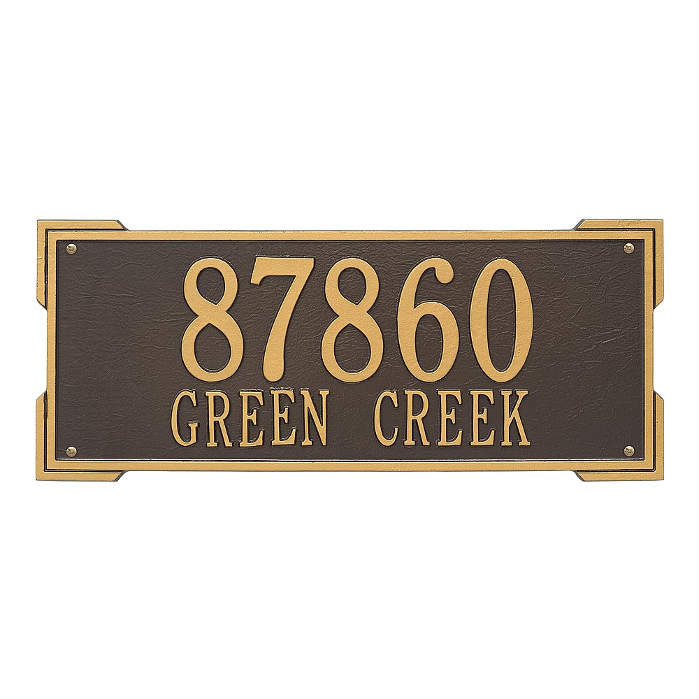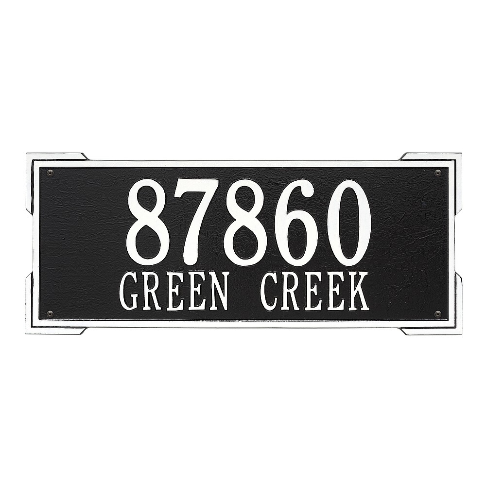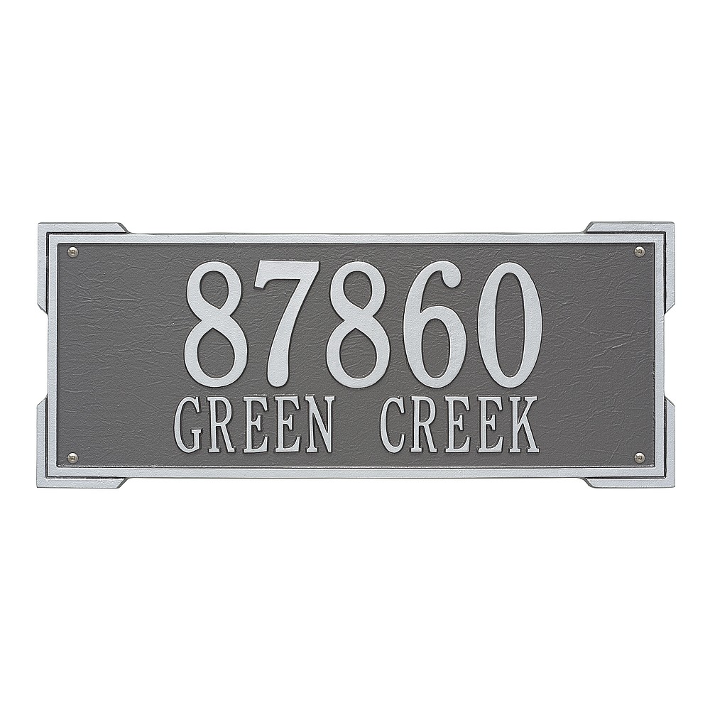 Dimensions (L x W x H): 23.5 x 9 x .375 The Roanoke personalized plaque is a great way to add instant curb appeal. The simple yet bold look is eye catching and will update the look of your entryway. Every Whitehall plaque is proudly hand crafted in the USA. Personalization is permanently cast into the sign. Manufactured from cast, high-density aluminum alloy and protected by our exclusive Alumi-Shield all weather coatings. Alumi-Shield All Weather Coating: A Whitehall Exclusive Alumi-Shield – Protects against the harshest weather and environmental elements. Extends the product life and maintains the look and function. Made in the USA.