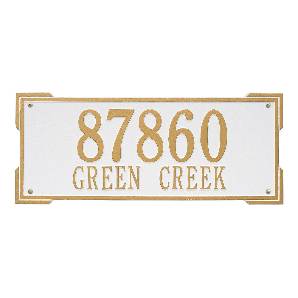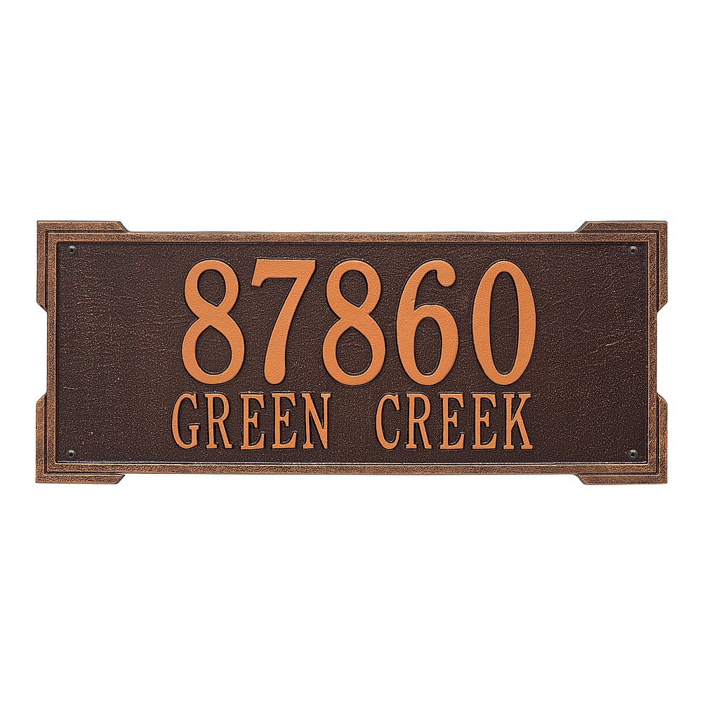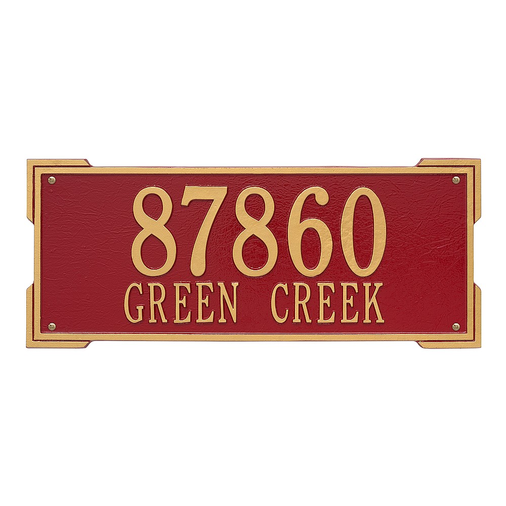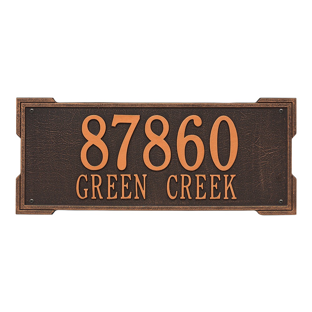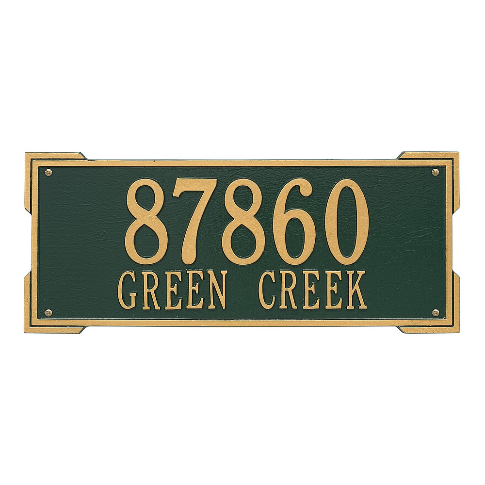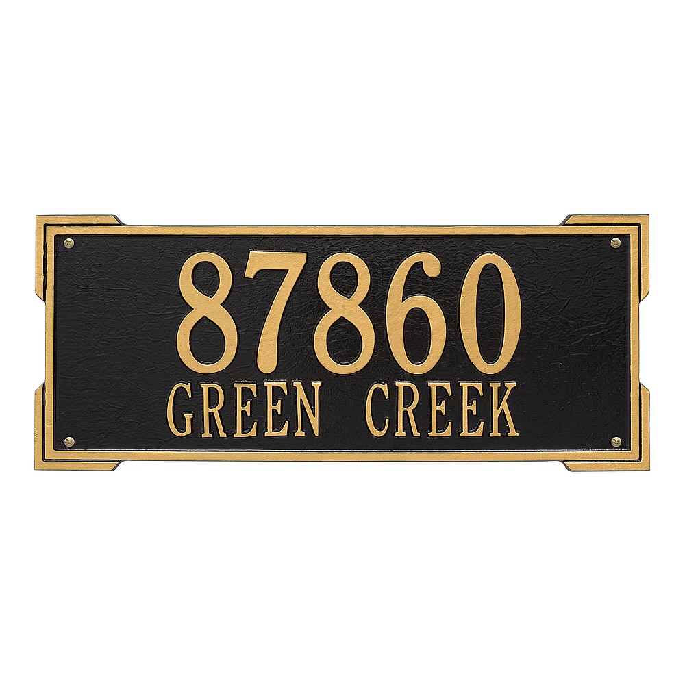 Dimensions (L x W x H): 23.5 x 9 x .375 The Roanoke personalized plaque is a great way to add instant curb appeal. The simple yet bold look is eye catching and will update the look of your entryway. Every Whitehall plaque is proudly hand crafted in the USA. Personalization is permanently cast into the sign. Manufactured from cast, high-density aluminum alloy and protected by our exclusive Alumi-Shield all weather coatings. Alumi-Shield All Weather Coating: A Whitehall Exclusive Alumi-Shield – Protects against the harshest weather and environmental elements. Extends the product life and maintains the look and function. Made in the USA.