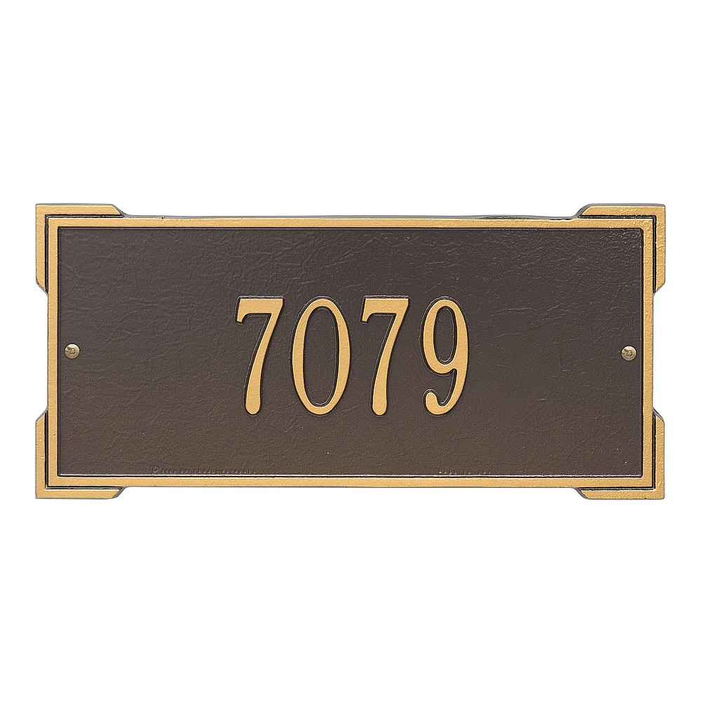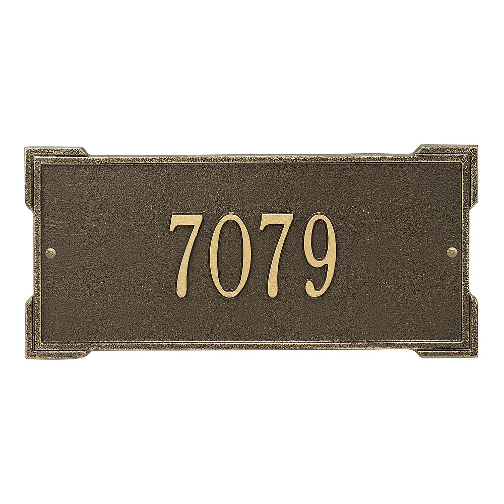 Dimensions (L x W x H): 16.75 x 7.9 x .375 The Roanoke personalized plaque is a great way to add instant curb appeal. The simple yet bold look is eye catching and will update the look of your entryway. Every Whitehall plaque is proudly hand crafted in the USA. Personalization is permanently cast into the sign. Manufactured from cast, high-density aluminum alloy and protected by our exclusive Alumi-Shield all weather coatings. Alumi-Shield All Weather Coating: A Whitehall Exclusive Alumi-Shield – Protects against the harshest weather and environmental elements. Extends the product life and maintains the look and function. Made in the USA.
