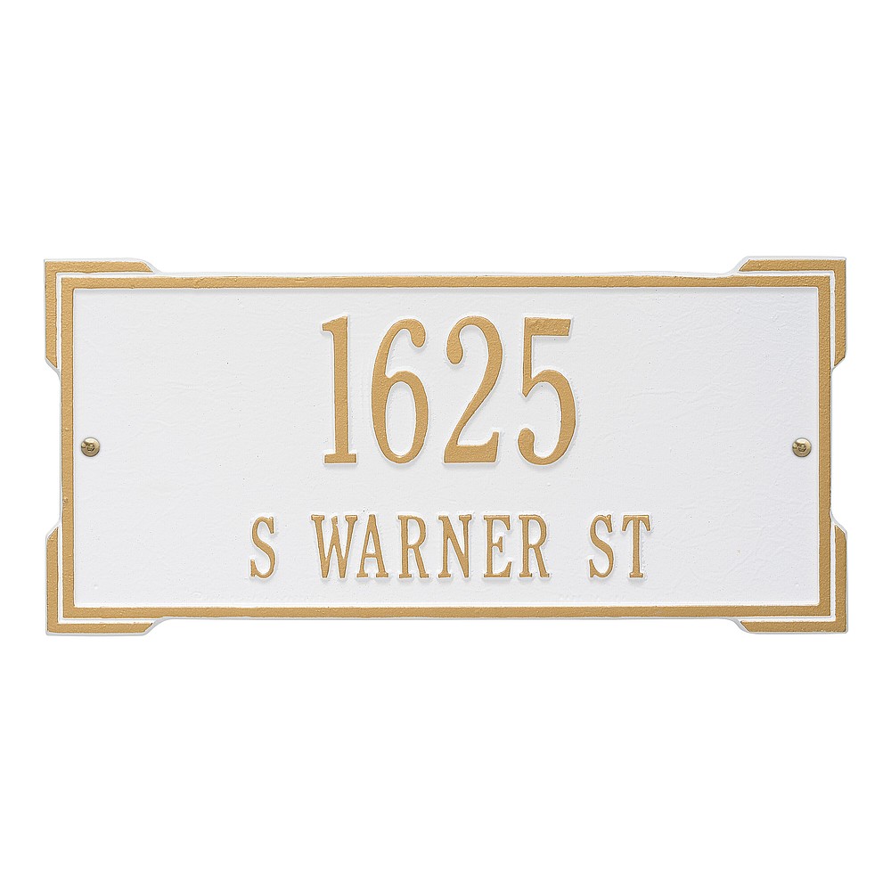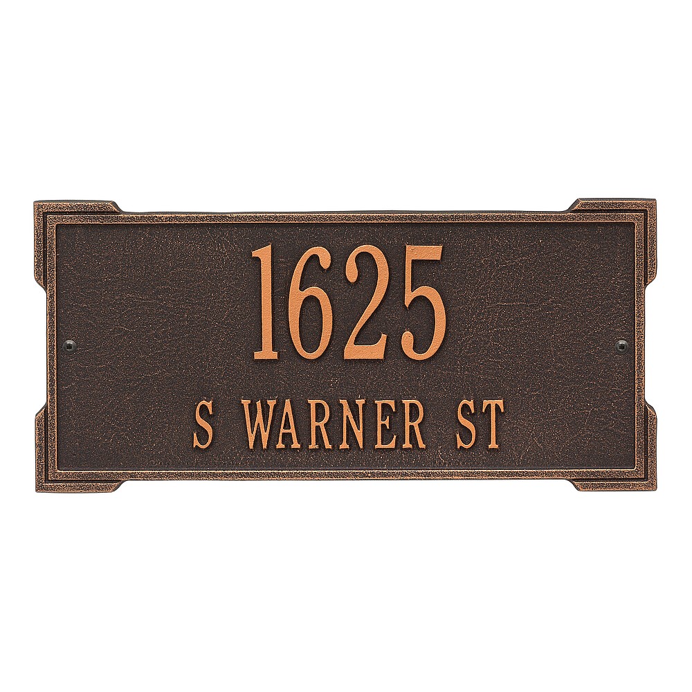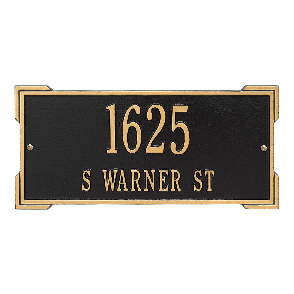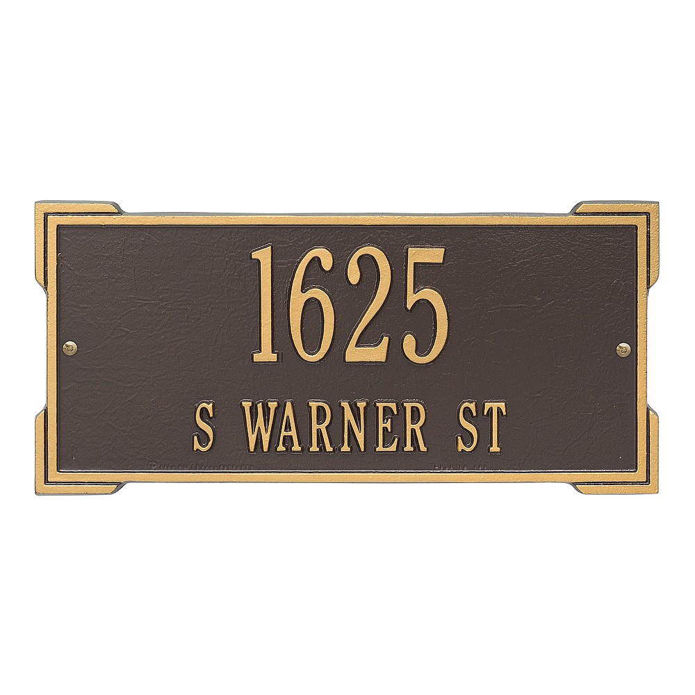 Dimensions (L x W x H): 16.75 x 7.9 x .375 The Roanoke personalized plaque is a great way to add instant curb appeal. The simple yet bold look is eye catching and will update the look of your entryway. Every Whitehall plaque is proudly hand crafted in the USA. Personalization is permanently cast into the sign. Manufactured from cast, high-density aluminum alloy and protected by our exclusive Alumi-Shield all weather coatings. Alumi-Shield All Weather Coating: A Whitehall Exclusive Alumi-Shield – Protects against the harshest weather and environmental elements. Extends the product life and maintains the look and function. Made in the USA.