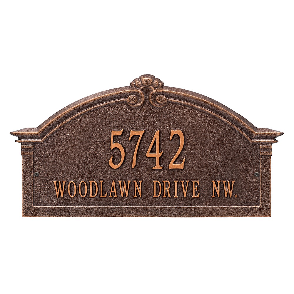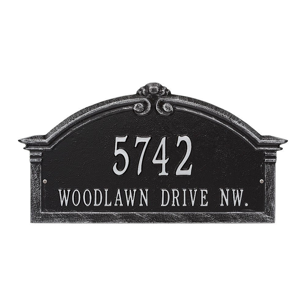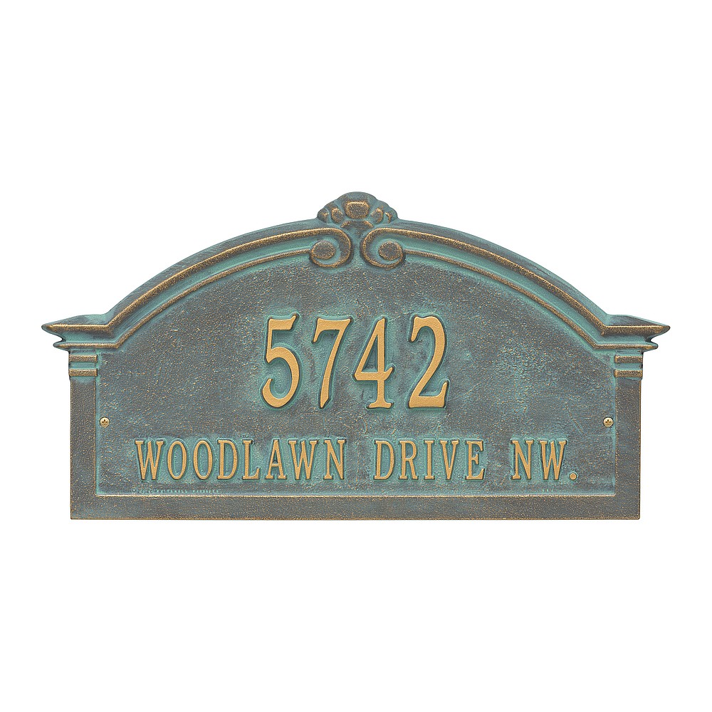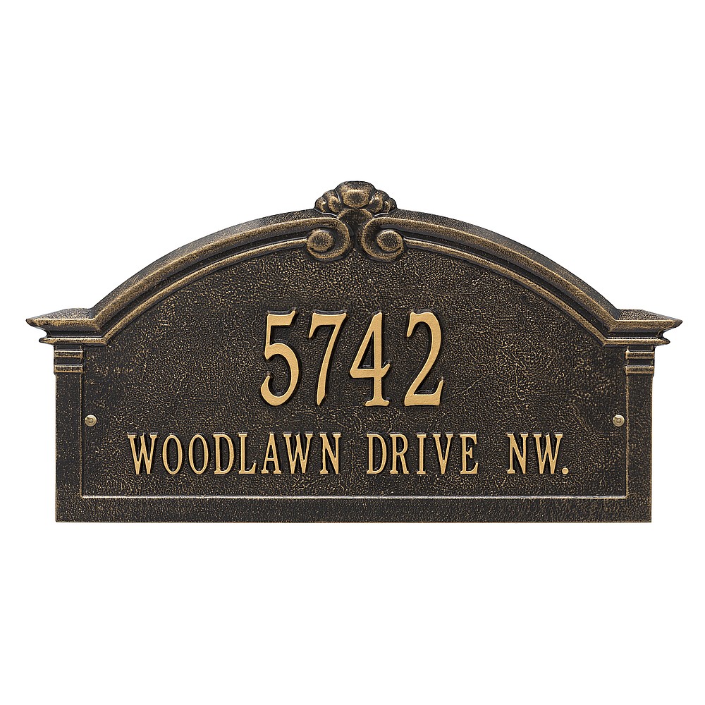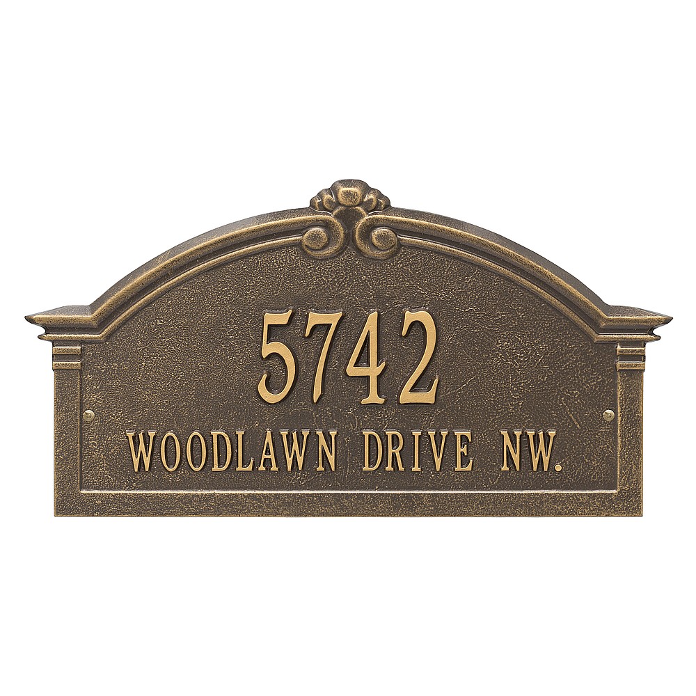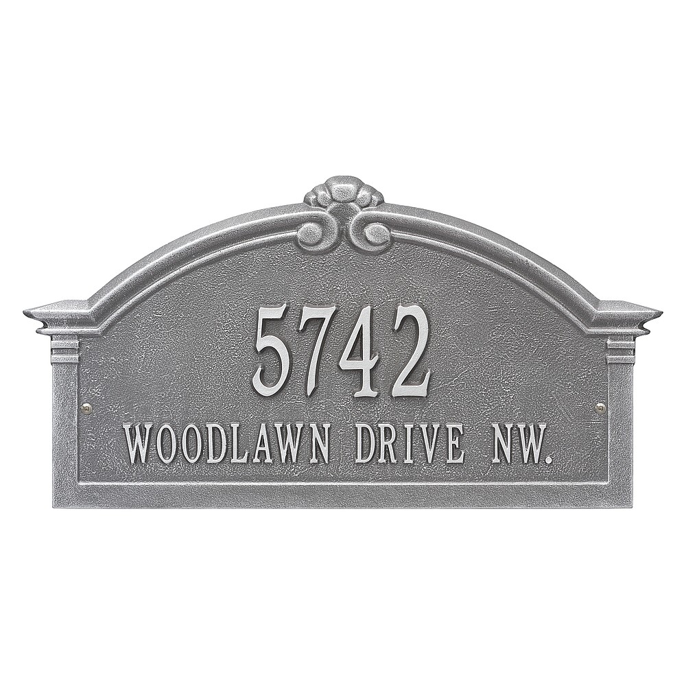 Dimensions (L x W x H): 18.75 x 10.25 x .4 The Whitehall Roselyn Arch personalized plaque adds instant curb appeal to your home address numbers. A detailed scroll border frames the edge of the Roselyn plaques classic arch design. Every Whitehall plaque is proudly hand crafted in the USA. Personalization is permanently cast into the sign. Manufactured from cast, high-density aluminum alloy and protected by our exclusive Alumi-Shield all weather coatings. Alumi-Shield All Weather Coating: A Whitehall Exclusive Alumi-Shield – Protects against the harshest weather and environmental elements. Extends the product life and maintains the look and function. Made in the USA.