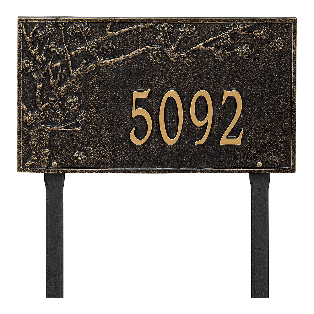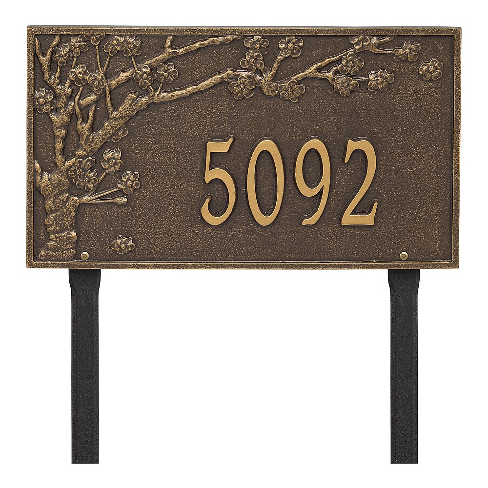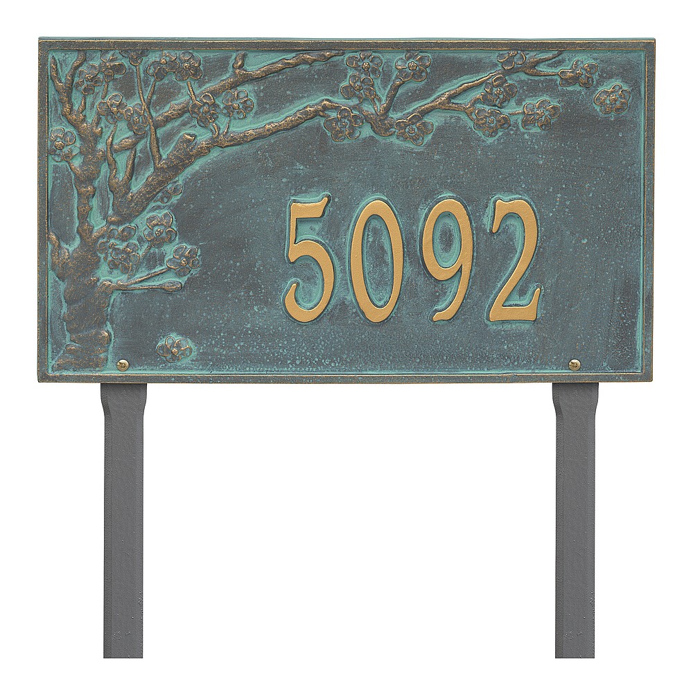 Dimensions (L x W x H): 20.25 x 11.5 x .375 The Whitehall Spring Blossom personalized plaque is a great way to add instant curb appeal. The Spring Blossom plaques classic rectangle shape is accented by a highly detailed tree in bloom. Every Whitehall plaque is proudly hand crafted in the USA. Personalization is permanently cast into the sign. Manufactured from cast, high-density aluminum alloy and protected by our exclusive Alumi-Shield all weather coatings. Alumi-Shield All Weather Coating: A Whitehall Exclusive Alumi-Shield – Protects against the harshest weather and environmental elements. Extends the product life and maintains the look and function. Made in the USA.