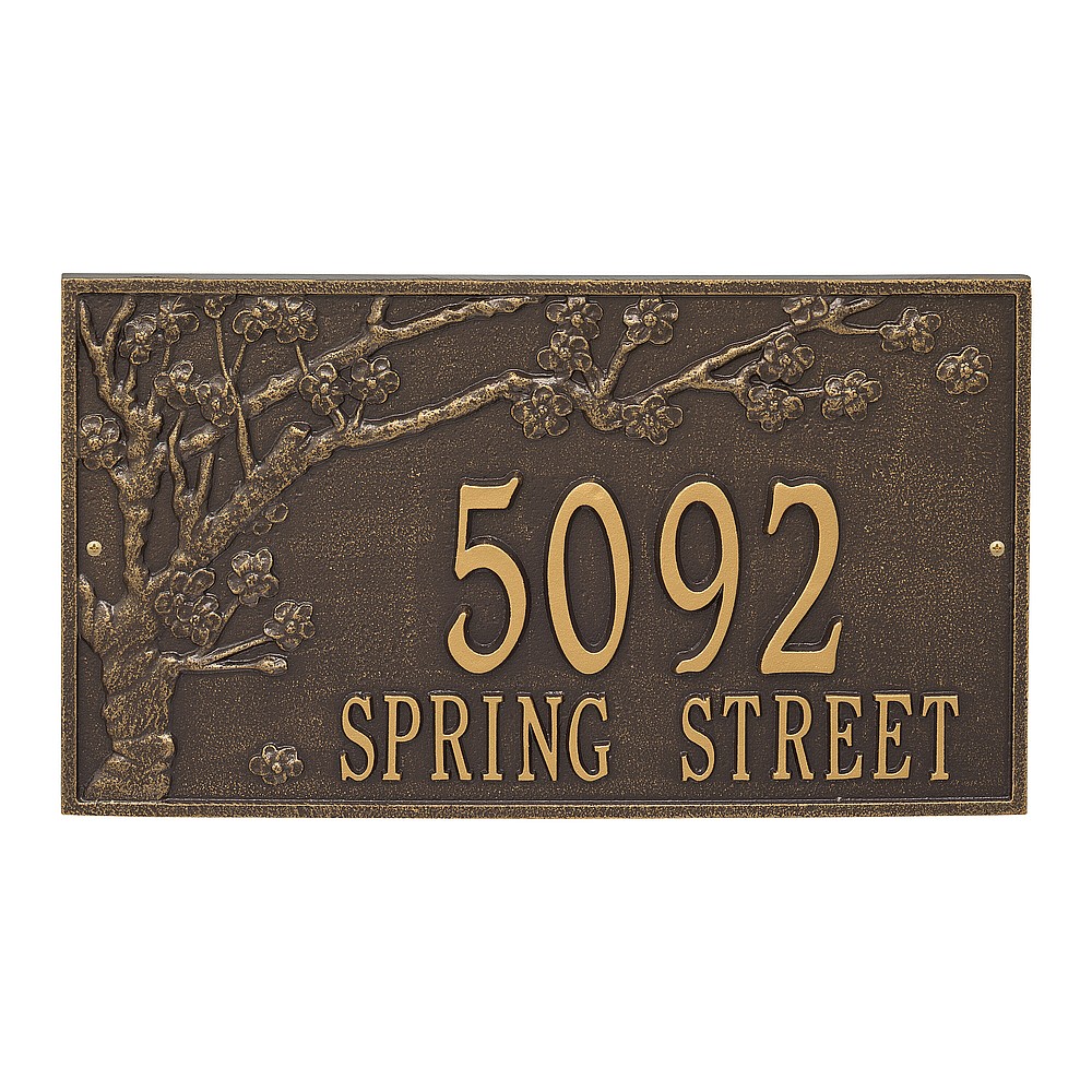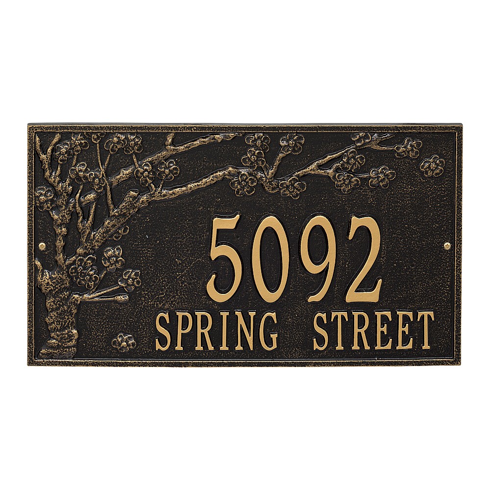 Dimensions (L x W x H): 20.25 x 11.5 x .375 The Whitehall Spring Blossom personalized plaque is a great way to add instant curb appeal. The Spring Blossom plaques classic rectangle shape is accented by a highly detailed tree in bloom. Every Whitehall plaque is proudly hand crafted in the USA. Personalization is permanently cast into the sign. Manufactured from cast, high-density aluminum alloy and protected by our exclusive Alumi-Shield all weather coatings. Alumi-Shield All Weather Coating: A Whitehall Exclusive Alumi-Shield – Protects against the harshest weather and environmental elements. Extends the product life and maintains the look and function. Made in the USA.
