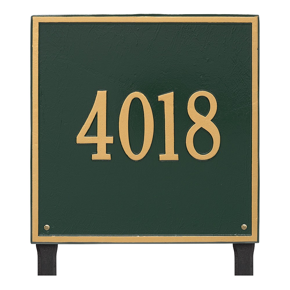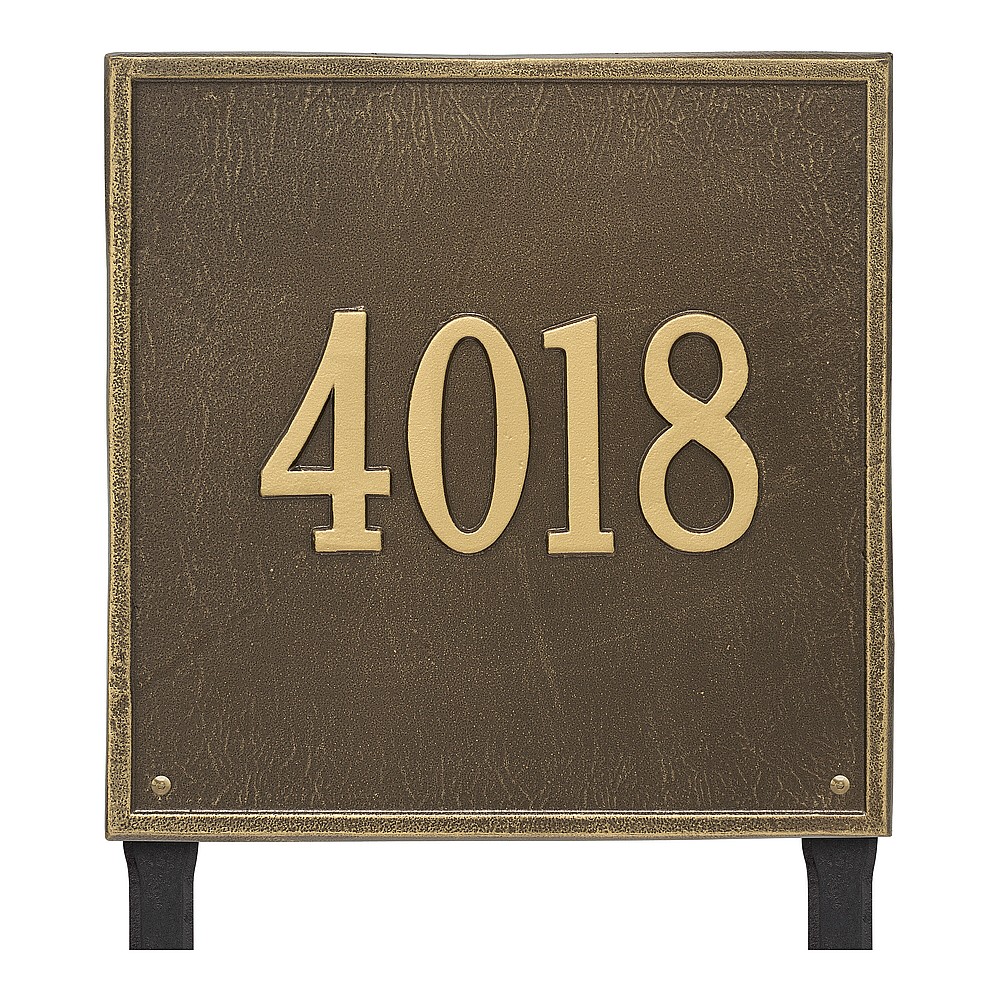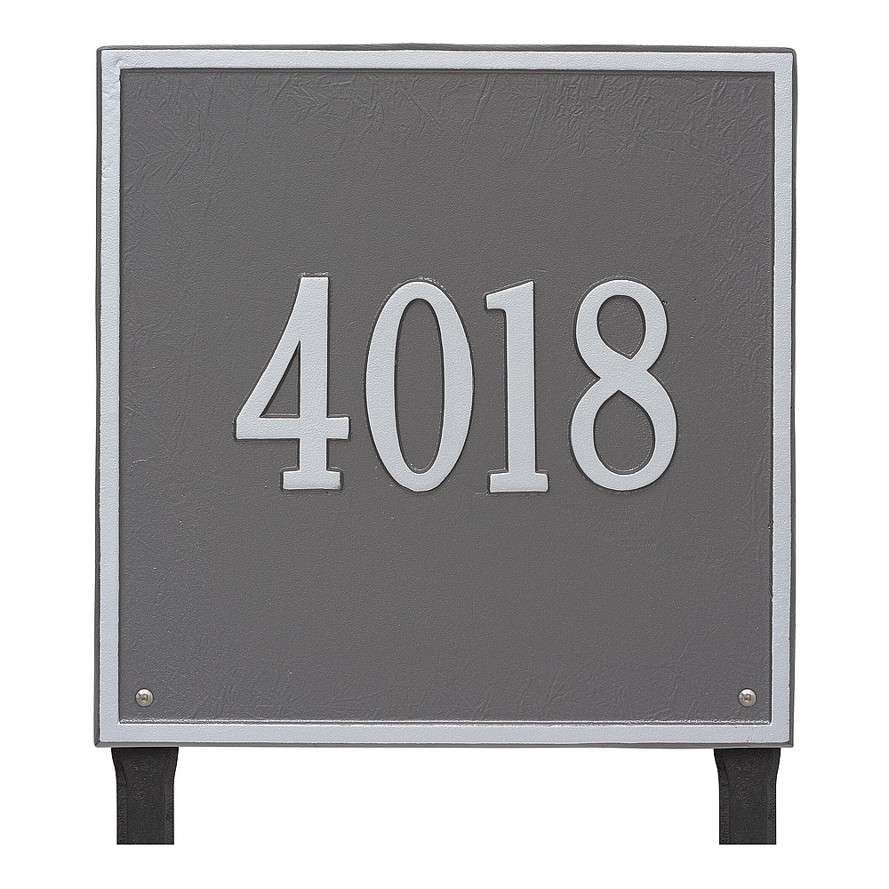 Dimensions (L x W x H): 15 x 15 x .375 The Whitehall Square personalized plaque adds instant curb appeal to your home address numbers. The traditional style of the Square plaque compliments any home exterior. Every Whitehall plaque is proudly hand crafted in the USA. Personalization is permanently cast into the sign. Manufactured from cast, high-density aluminum alloy and protected by our exclusive Alumi-Shield all weather coatings. Alumi-Shield All Weather Coating: A Whitehall Exclusive Alumi-Shield – Protects against the harshest weather and environmental elements. Extends the product life and maintains the look and function. Made in the USA.
