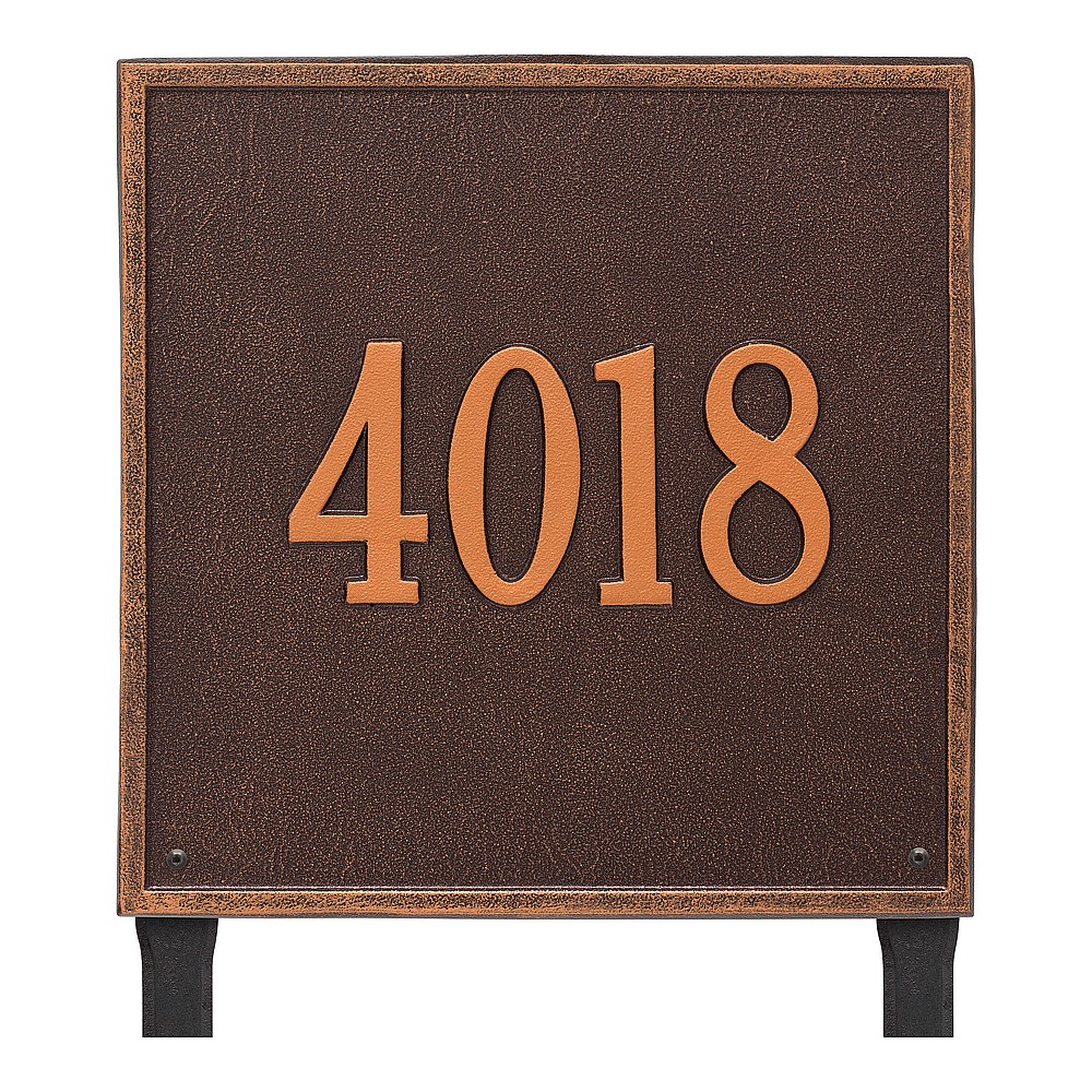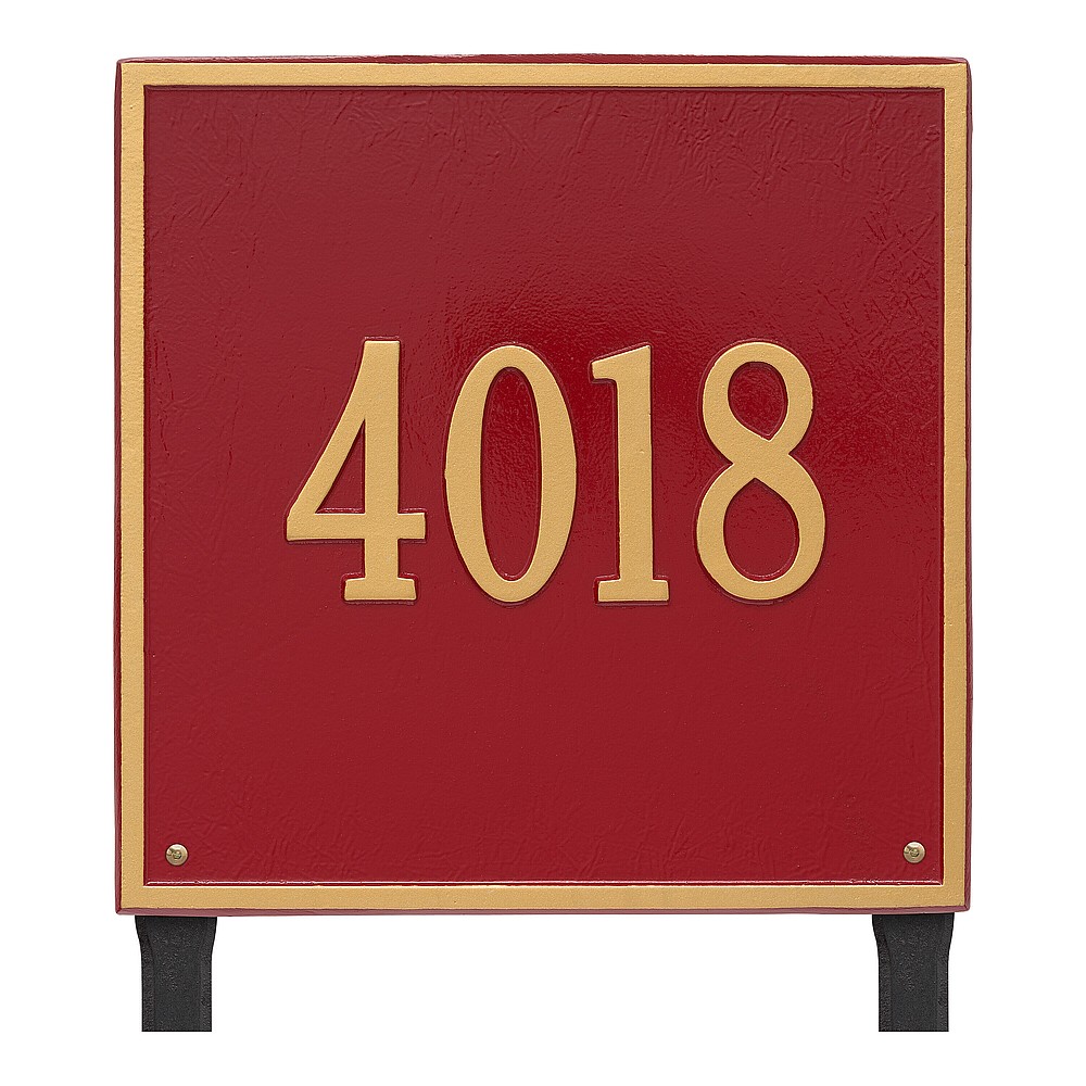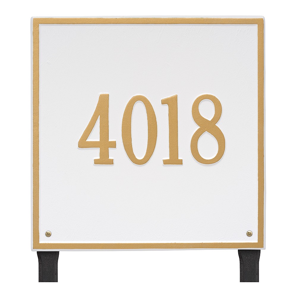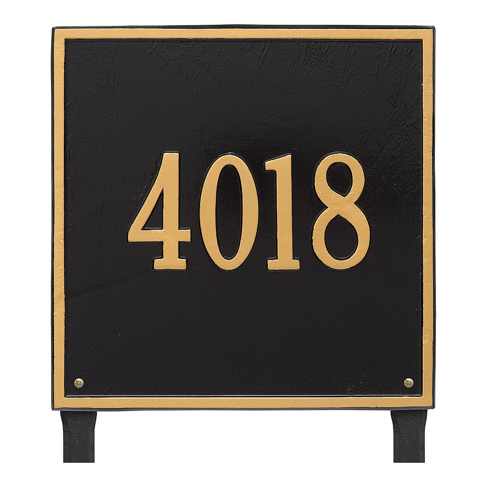 Dimensions (L x W x H): 15 x 15 x .375 The Whitehall Square personalized plaque adds instant curb appeal to your home address numbers. The traditional style of the Square plaque compliments any home exterior. Every Whitehall plaque is proudly hand crafted in the USA. Personalization is permanently cast into the sign. Manufactured from cast, high-density aluminum alloy and protected by our exclusive Alumi-Shield all weather coatings. Alumi-Shield All Weather Coating: A Whitehall Exclusive Alumi-Shield – Protects against the harshest weather and environmental elements. Extends the product life and maintains the look and function. Made in the USA.
