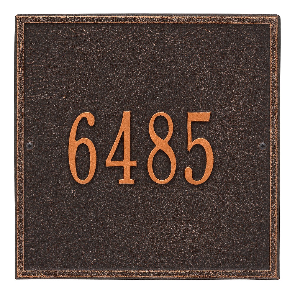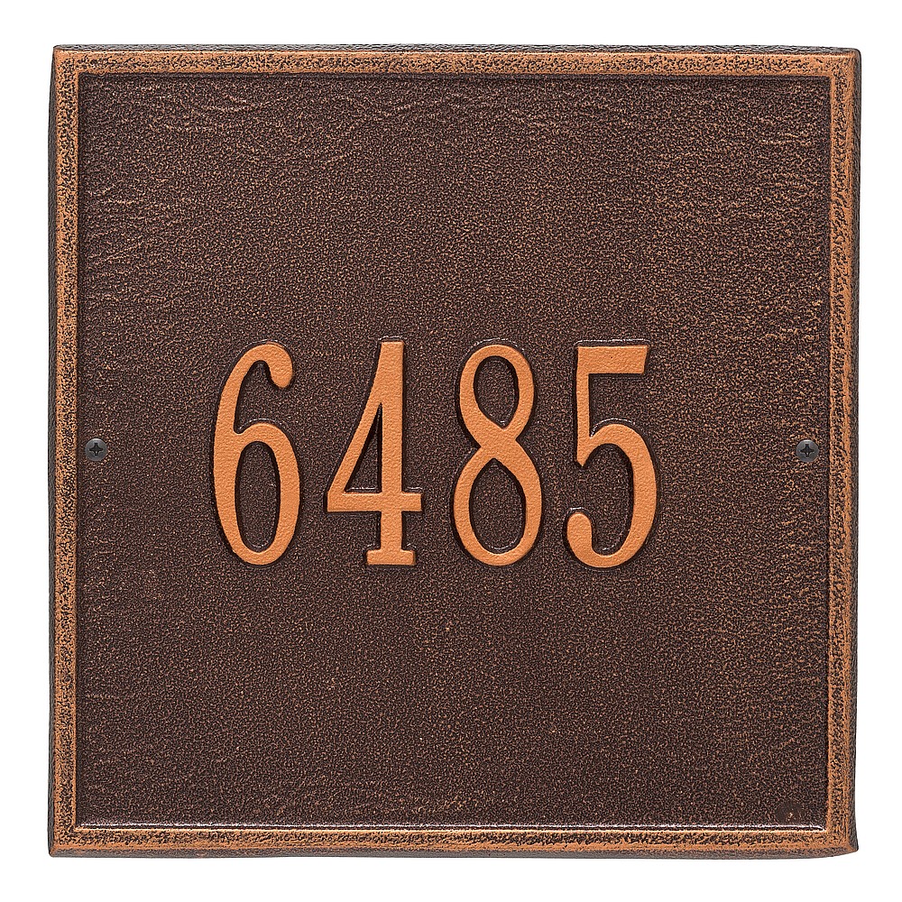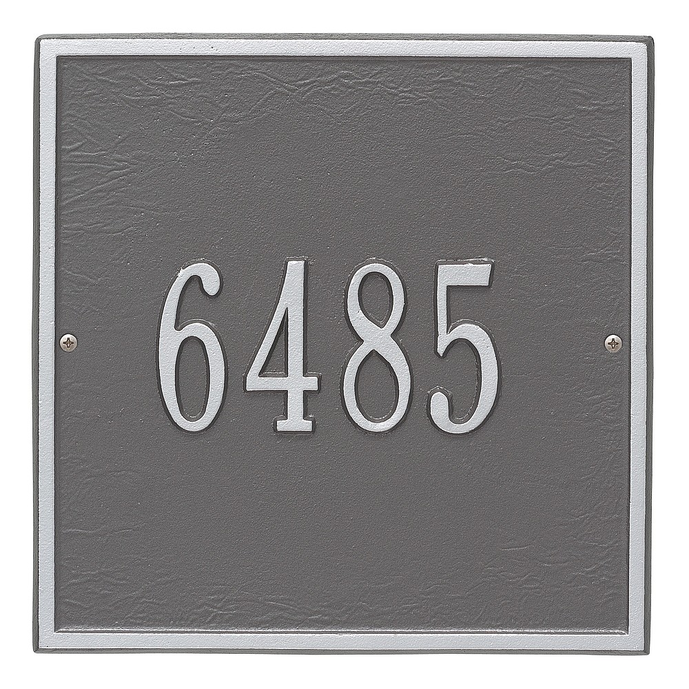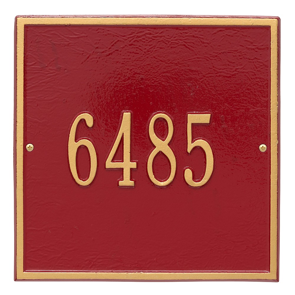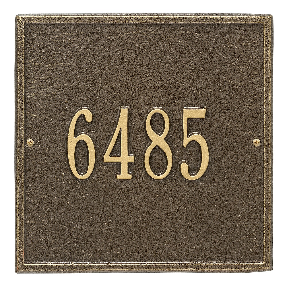 Dimensions (L x W x H): 11 x 11 x .375 The Whitehall Square personalized plaque adds instant curb appeal to your home address numbers. The traditional style of the Square plaque compliments any home exterior. Every Whitehall plaque is proudly hand crafted in the USA. Personalization is permanently cast into the sign. Manufactured from cast, high-density aluminum alloy and protected by our exclusive Alumi-Shield all weather coatings. Alumi-Shield All Weather Coating: A Whitehall Exclusive Alumi-Shield – Protects against the harshest weather and environmental elements. Extends the product life and maintains the look and function. Made in the USA.