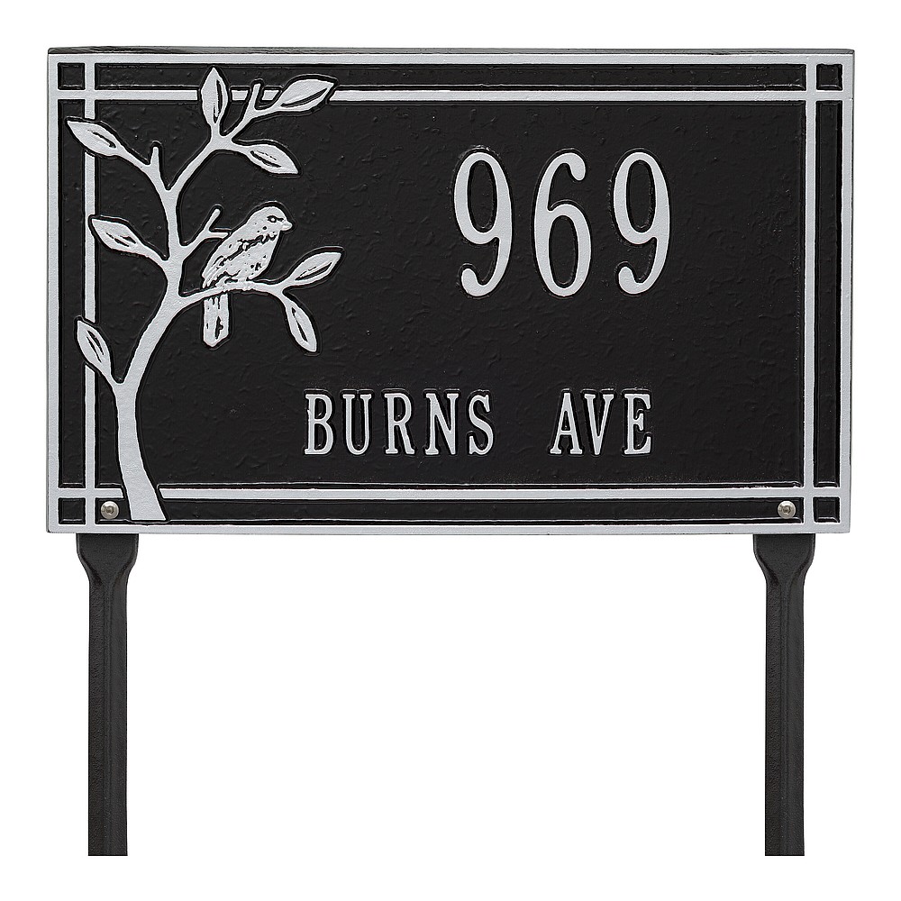 Dimensions (L x W x H): 16.5 x 10 x .375 The Whitehall Woodridge Bird personalized plaque is a great way to add instant curb appeal. The Woodridge Bird plaque features a traditional style shadow box border accented by bird and branch details. Every Whitehall plaque is proudly hand crafted in the USA. Personalization is permanently cast into the sign. Manufactured from cast, high-density aluminum alloy and protected by our exclusive Alumi-Shield all weather coatings. Alumi-Shield All Weather Coating: A Whitehall Exclusive Alumi-Shield – Protects against the harshest weather and environmental elements. Extends the product life and maintains the look and function. Made in the USA.