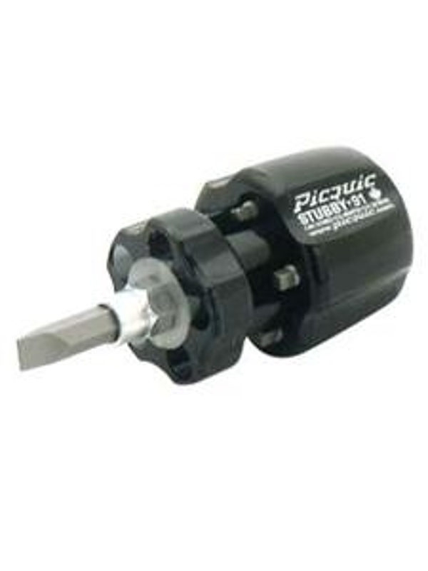 Small enough to fit into crowded tool boxes, glove boxes or even a pocket or purse, the compact STUBBYâ„¢ is perfect for hard-to-reach-spots at home and electricians swear by them. It has the full functionality of our other models but in a stowable size. The STUBBYâ„¢ comes loaded with six 1/4 in hex insert bits and an aircraft alloy shank with a solid handle. The shorter, 1 and 1/3 in insert bits are precision-machined and hardened to stand up to years of use. The 1/4 in hex makes STUBBYâ„¢ bits ideal for use in drills and impact-drivers. The magnetic bit-holder grips the working bit and screw securely.