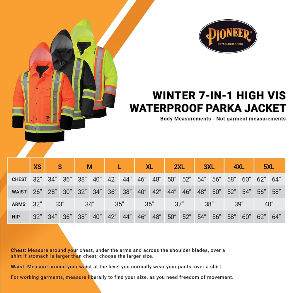 Pioneer V1120470 High Visibility Waterproof 7-in-1 Parka – Black