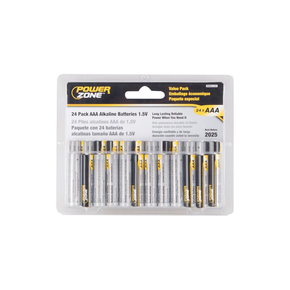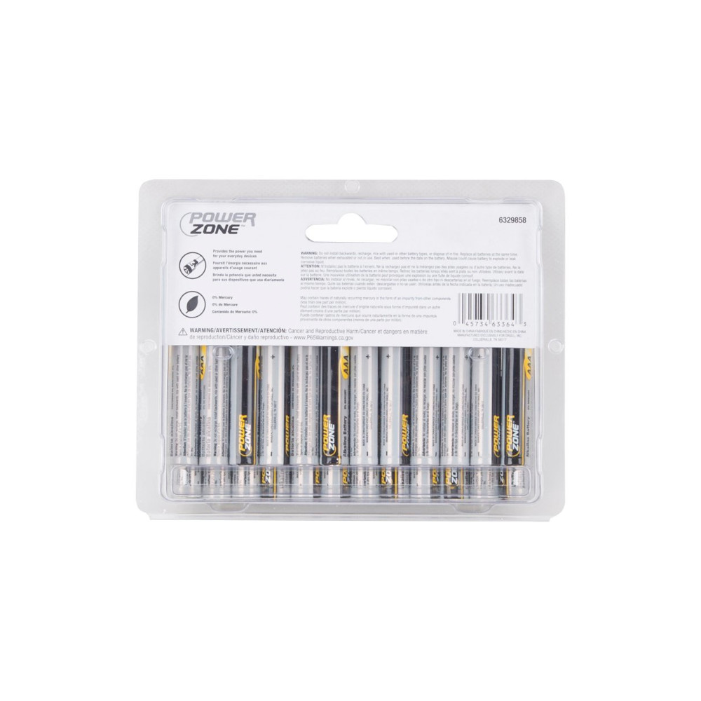 PowerZone LR03-24P Battery, 1.5 V Battery, AAA Battery, Zinc, Manganese Dioxide, and Potassium Hydroxide