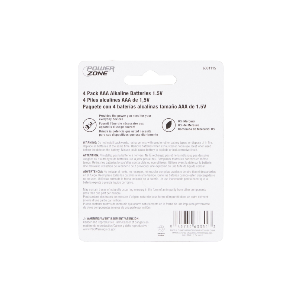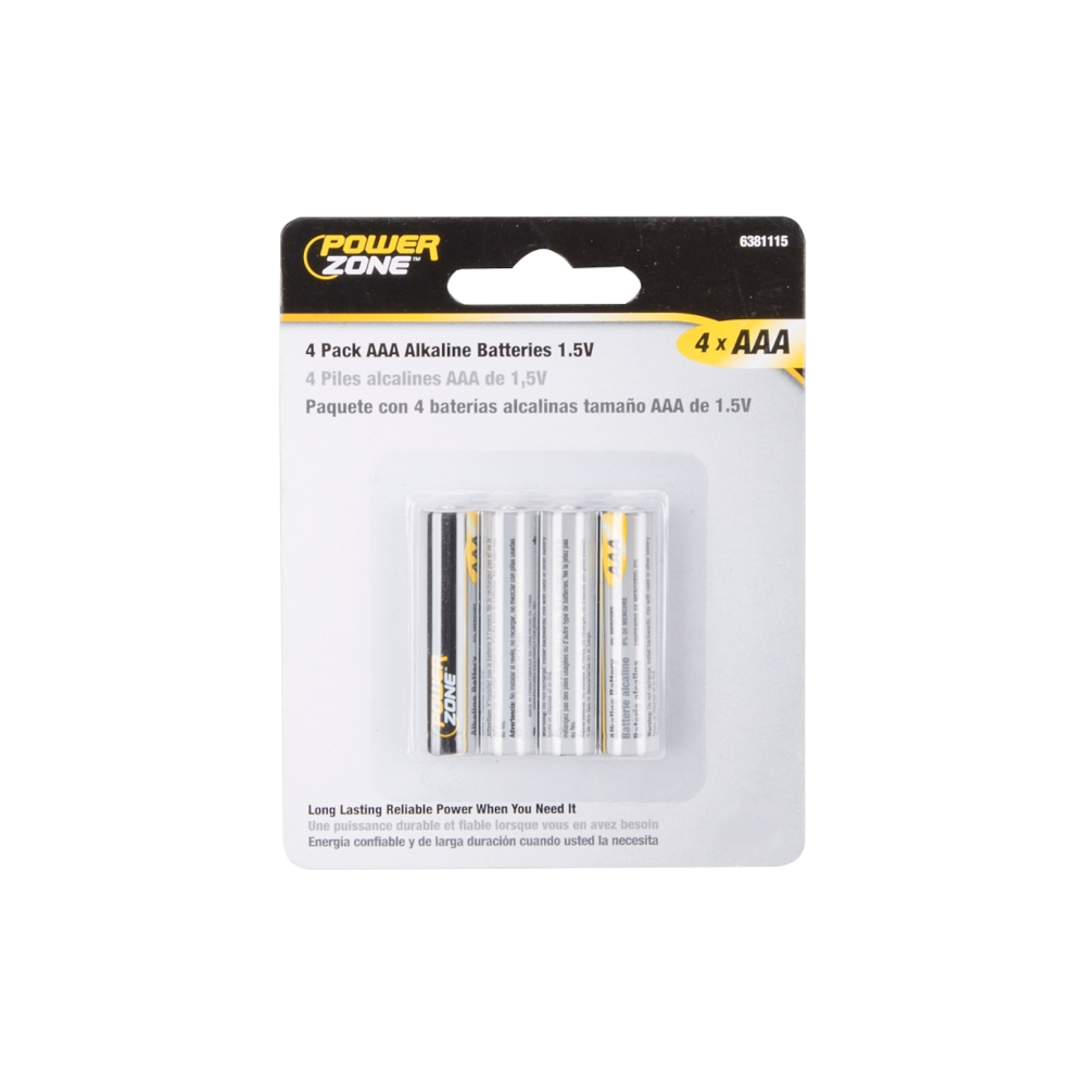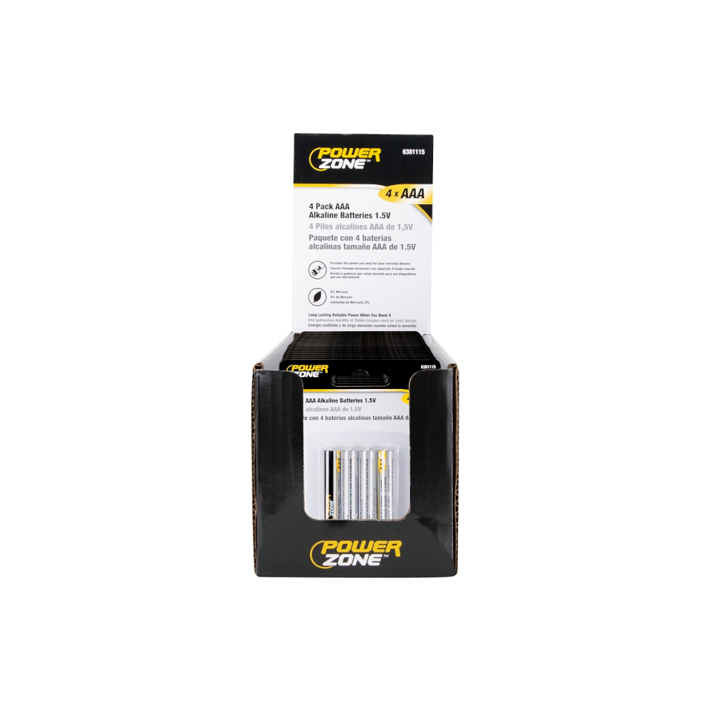 PowerZone LR03-4P-DB Battery, 1.5 V Battery, AAA Battery, Zinc, Manganese Dioxide, and Potassium Hydroxide