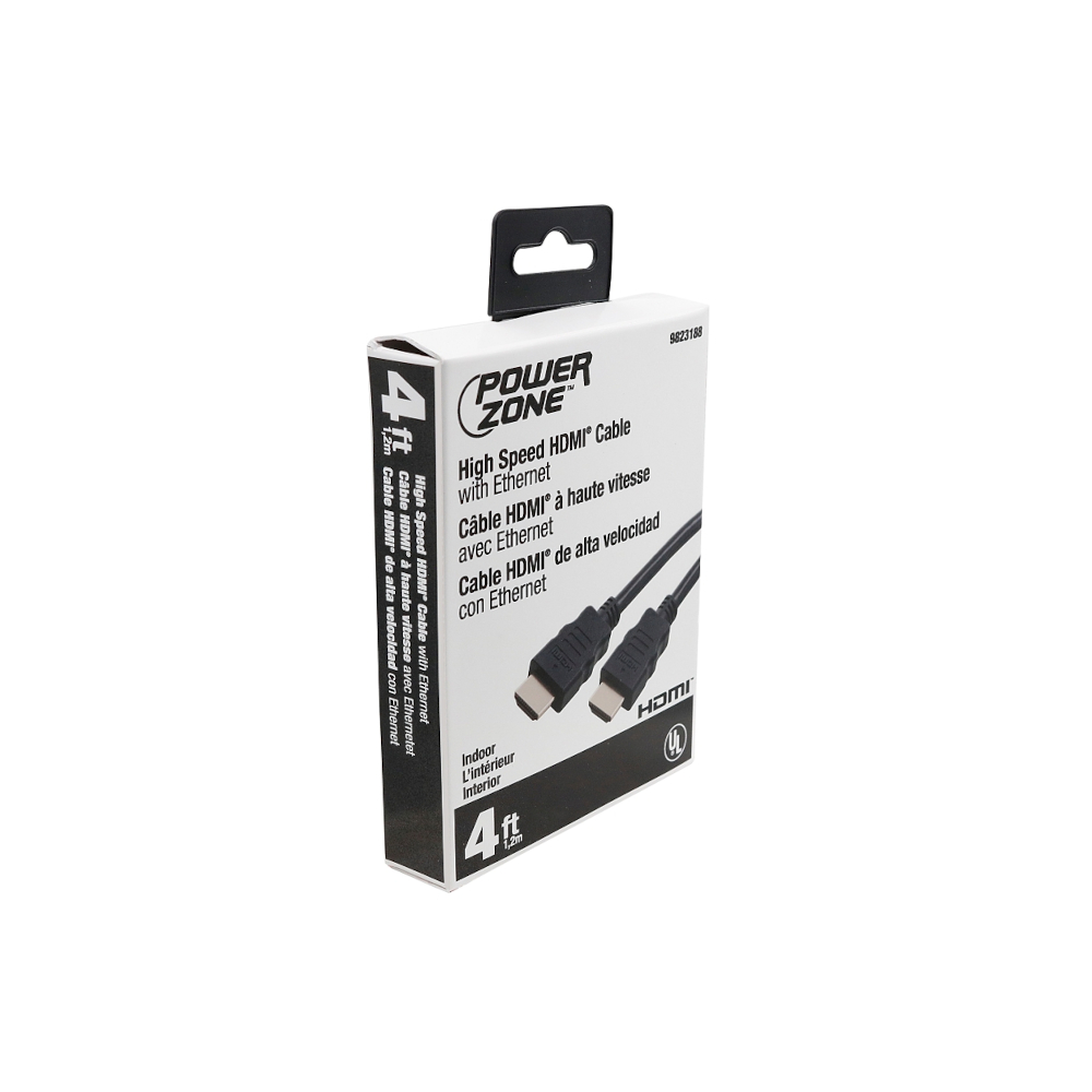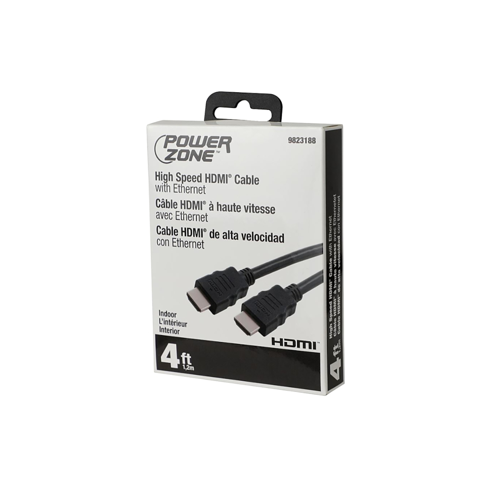 PowerZone ORHDMI01 4ft High-Speed HDMI Cable – Black & Silver