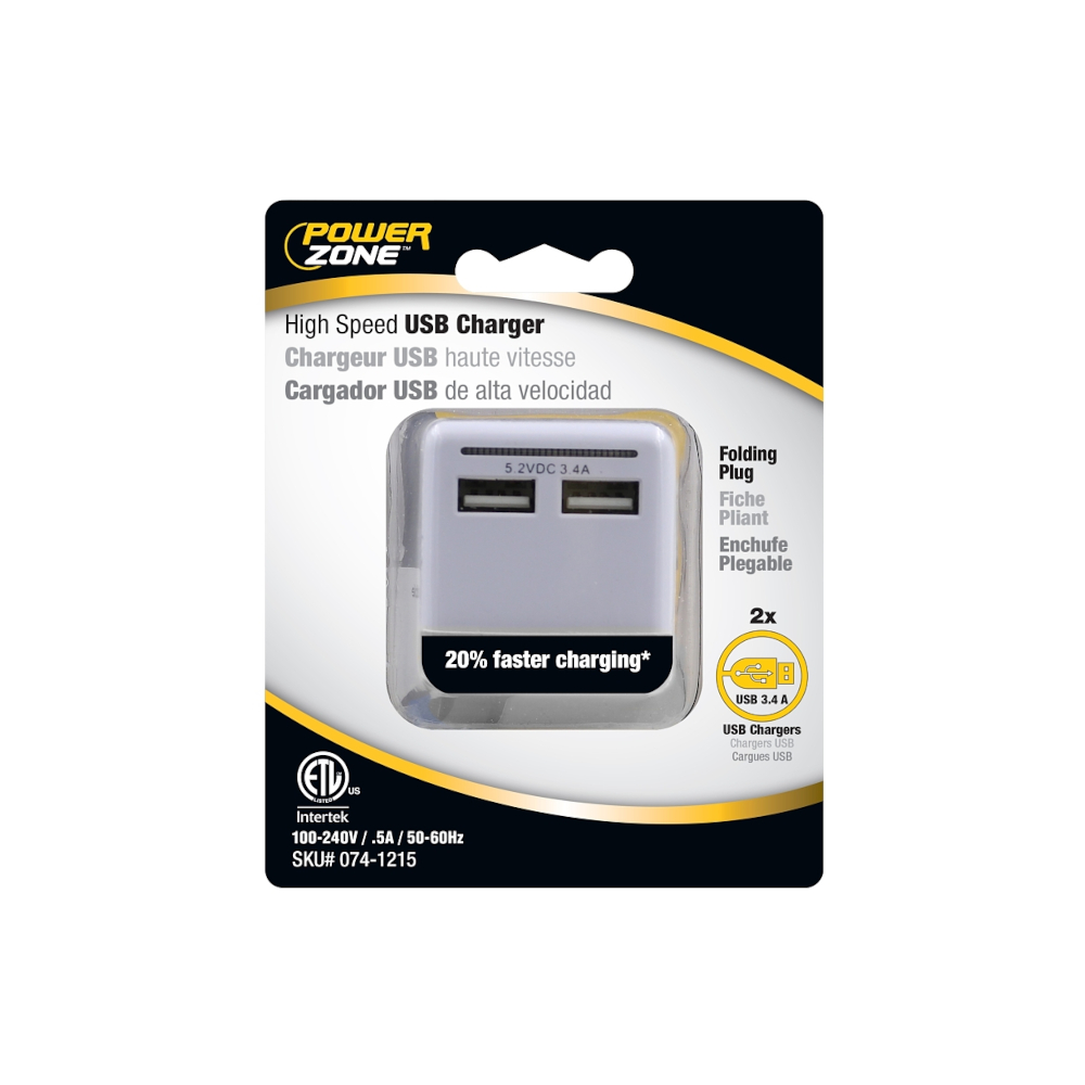 PowerZone ORUSB340 3.4A AC Compact 2-USB Charger – White