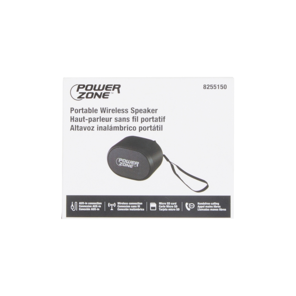 Portable wireless speaker. Made of ABS material. Supports MP3. Compatible with Micro SD card/USB/AUX/wireless/microphone/FM radio. 300mAh battery. 32.8 ft (10m) transmit distance. 3W speaker. Charging Power: DC/rechargeable by USB, and no external batteries required. Black color.