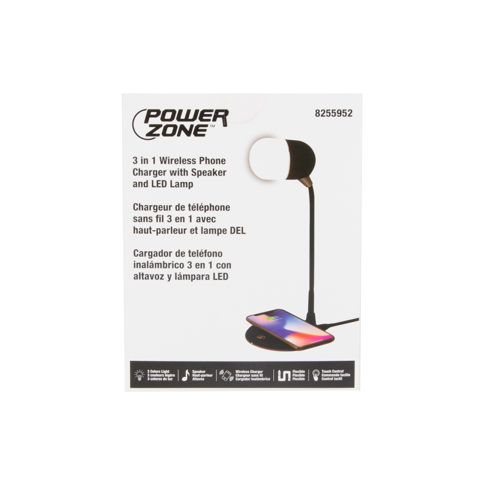 PowerZone SH08 3-in-1 Phone Charger with Speaker & LED Lamp – Black