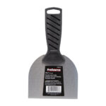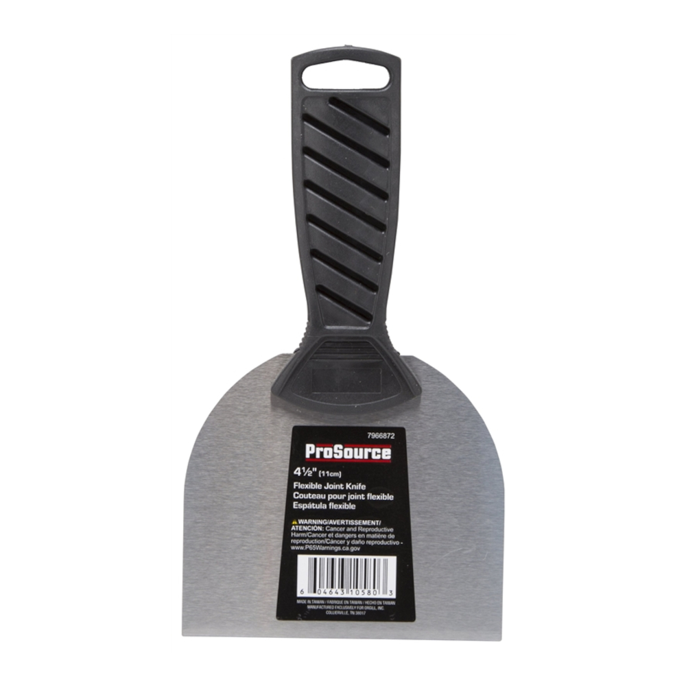 Plastic injection handle with half tang blade construction. Heat treated, sand polished and chrome-plated, high-carbon steel blade.