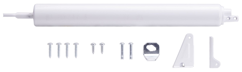 Internal spring for shock absorption. Provides 90 deg opening for outward swinging doors. Adjustable closing speed control valve. Permanent internal lubrication. Overall length 16-1/2 in. Load capacity of 65 lb.