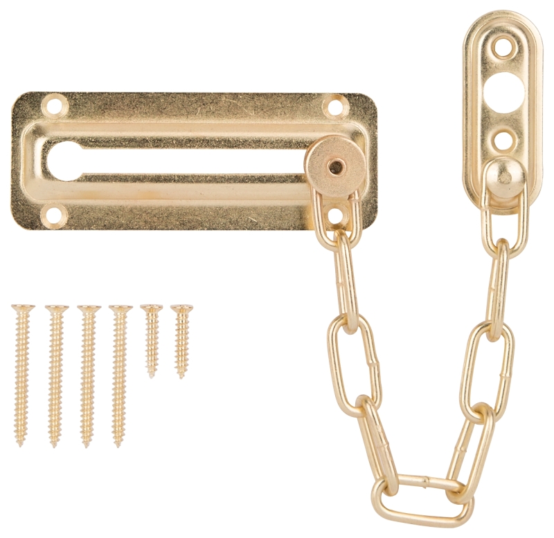 ProSource 807277-PS 3-3/8" x 2" x 6" Steel Chain Door Guard – Polished Brass