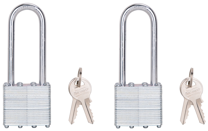 The ProSource padlock is ideal for high security. It has a steel tumbler with a hardened steel shackle and brass keys are included.