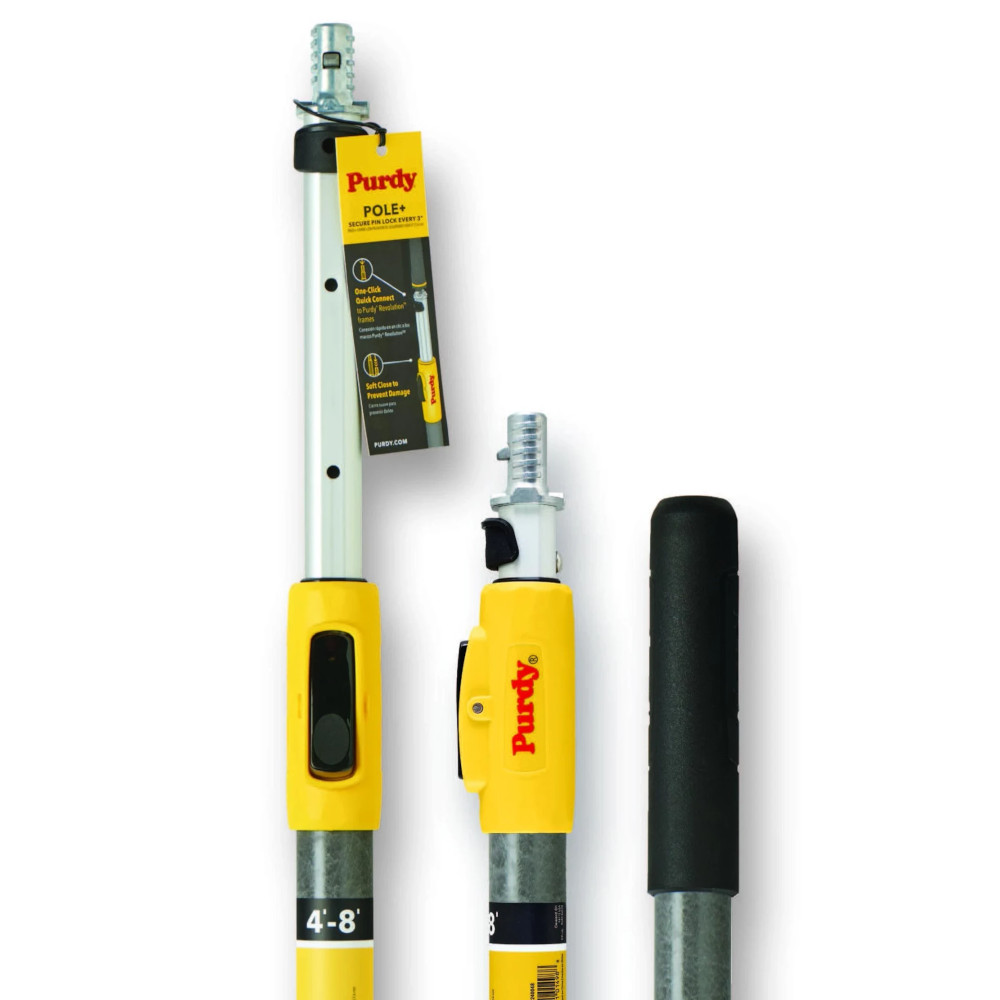 Purdy® Pole+ Extension Poles are designed for secure control at any height, featuring a pin locking mechanism that’s adjustable every 3” and increased pole thickness for durability and application control. The universal tip offers a one-click quick connection to Purdy Revolution frames or acme threaded frames.