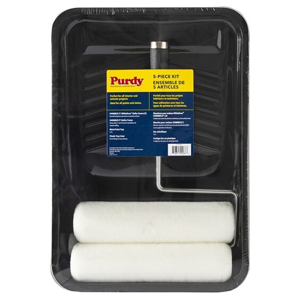 Purdy Paint Applicator Kit, Surface Type: Smooth, Textured, Number of Pieces: 5, Suitable for: All Paints, Stains, Includes: (1) Roller Frame, (1) Pan, (1) Liner and (2) Woven Roller Refills