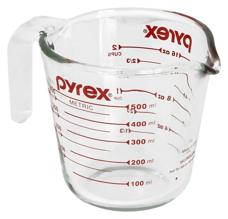 Generations of bakers and cooks have relied on the Pyrex® measuring cup. It’s marked in red for at a glance precision and the handle and spout are designed for controlled pouring. Durable Pyrex® glass lets you melt butter, chocolate and more right in the cup and is dishwasher safe for easy clean-up.