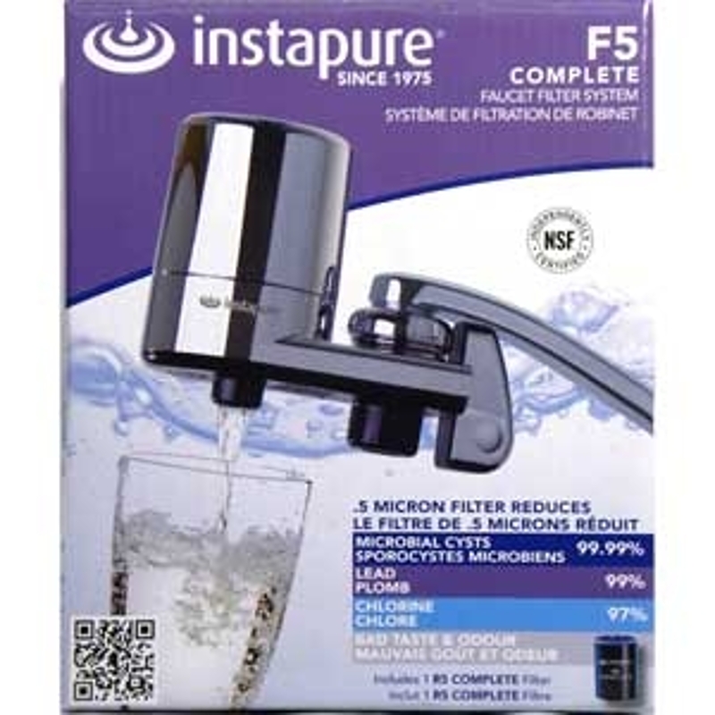 Instapure F5 faucet mount filter system attaches easily to kitchen faucets in minutes without using any tools. It delivers high-performance, is compact and long lasting and is ideal for home use for drinking water and cooking needs.